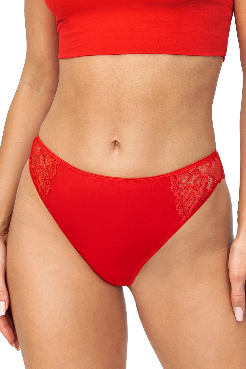 Přední část je neprůsvitná, bez zdobení. Boky a celou zadní část tvoří svůdná krajka dodávající modelu jemnost a ženský detail. Díky preciznímu zpracování se tanga nerýsují pod oblečením, takže jsou vhodná jak na běžné nošení, tak pro speciální příležitosti. Pružný materiál se přizpůsobí postavě a zajistí pohodlí po celý den. Intenzivní červená nebo elegantní černá barva podtrhnou ženskost a dodají sebevědomí při každém kroku.