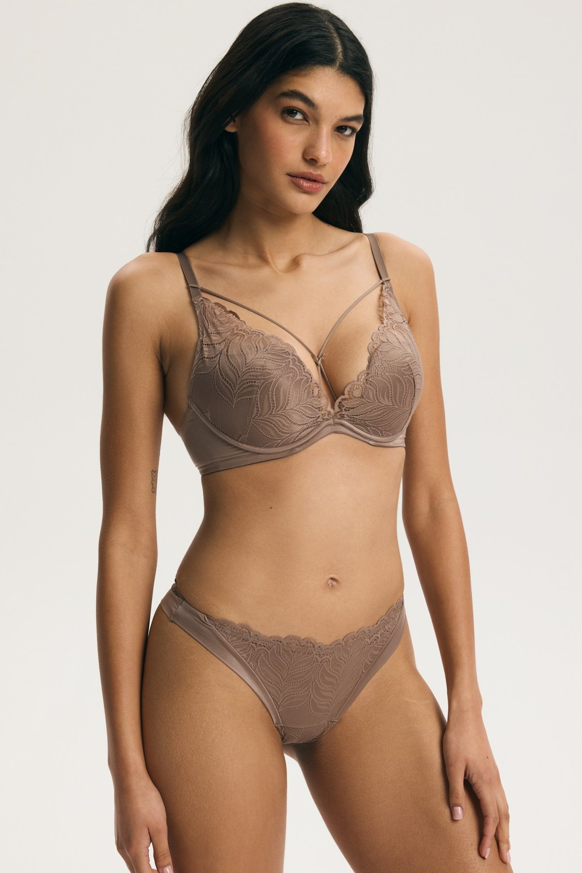 Atraktivní podprsenka s polovyztuženými košíčky. Jejich spodní část je lehce vyztužená pěnovou hmotou a zahalena do…