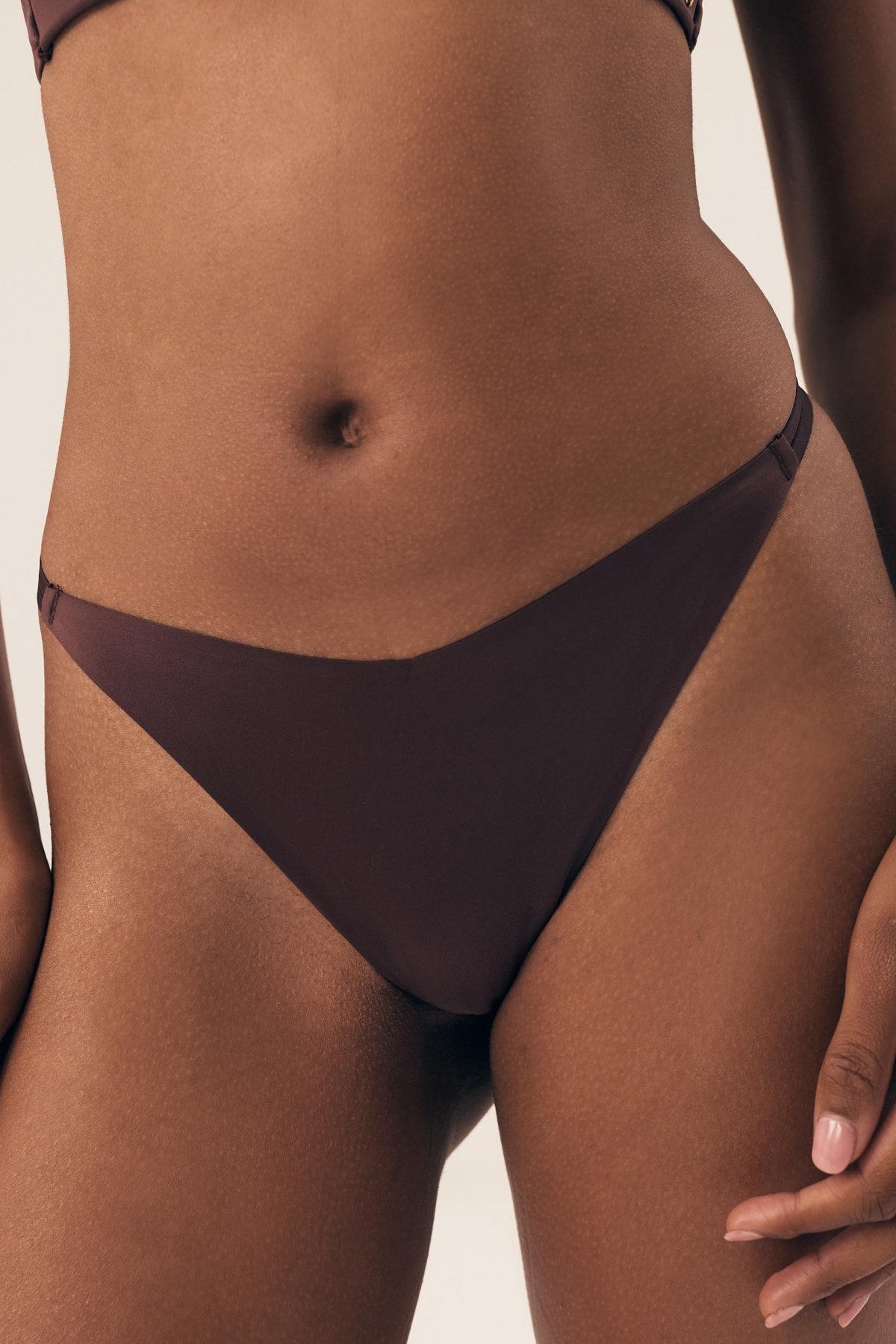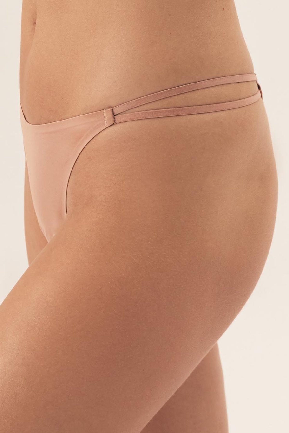 Hladká tanga Bosco působí čistě a lehce, ale zaujmou promyšlenými detaily. Lepené okraje pomáhají k hladšímu vzhledu pod oblečením, takže se dobře hodí i pod přiléhavější střihy. Přední díl je řešený do tvaru písmene V, který model opticky odlehčuje. Po stranách jsou dvojité pružné pásky, jež dodávají tangům jemně dekorativní vzhled bez zbytečné výraznosti. Zadní část doplňuje drobný detail s logem ESOTIQ a malé trojúhelníkové vykrojení. V rozkroku je bavlněná podšívka pro pohodlnější nošení.