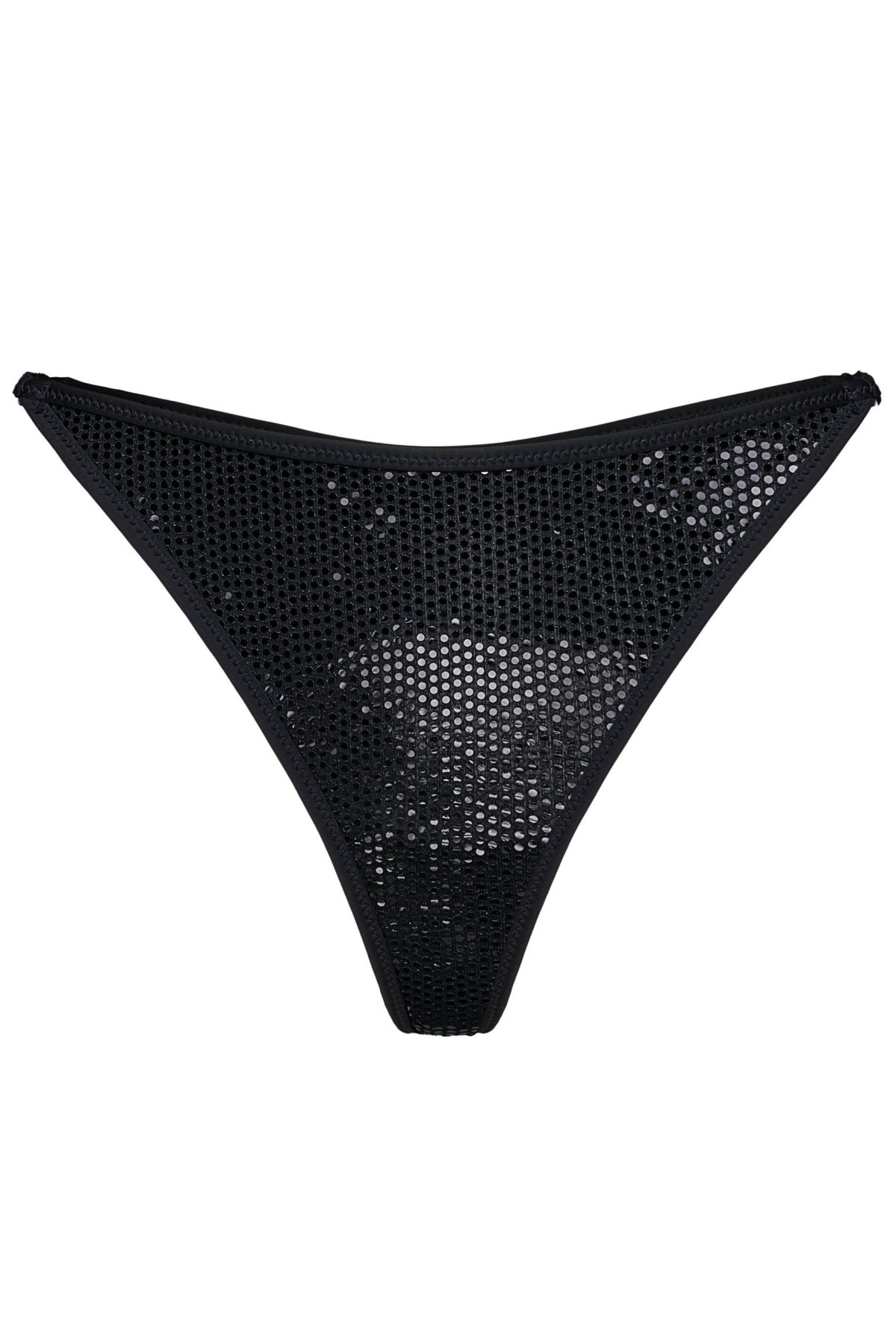 Tanga Fever přinášejí spojení elegance a odvážného lesku. Jsou zdobena drobnými černými flitry, které vytvářejí sofistikovaný efekt a jemně odrážejí světlo. Díky tenkým páskům se perfektně přizpůsobí postavě. Samozřejmostí je bavlněný klínek pro svěží pocit. Ideální pro speciální příležitosti i okamžiky, kdy chcete vyniknout.