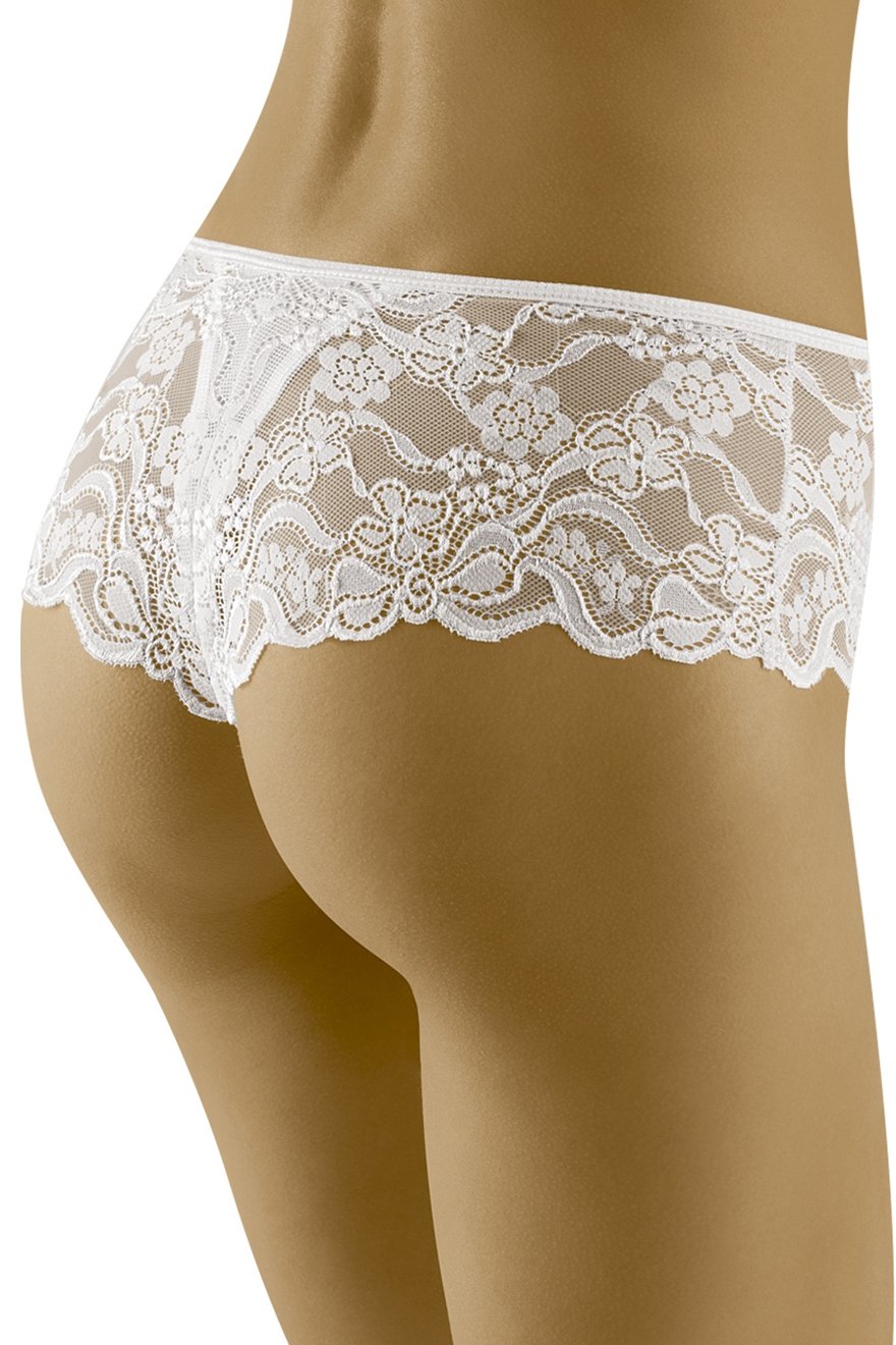 Tyto okouzlující stringo-šortky spojují půvab krajkového prádla s komfortem šortkového střihu. Jsou o něco vyšší, takže krásně sedí na bocích a vytváří elegantní linii, která lichotí postavě. Dominantou je široká, výrazná krajka – působí luxusně, žensk y a dodává prádlu šmrnc, který zaujme na první pohled. Transparentní materiál s efektem průsvitu přidává jemnou smyslnost, aniž by působil přehnaně. Pružná tkanina se přizpůsobí křivkám, nikde zbytečně netlačí a je příjemná i při delším nošení. Skvělá volba, když chcete prádlo, které je pohodlné a přitom opravdu svůdné.