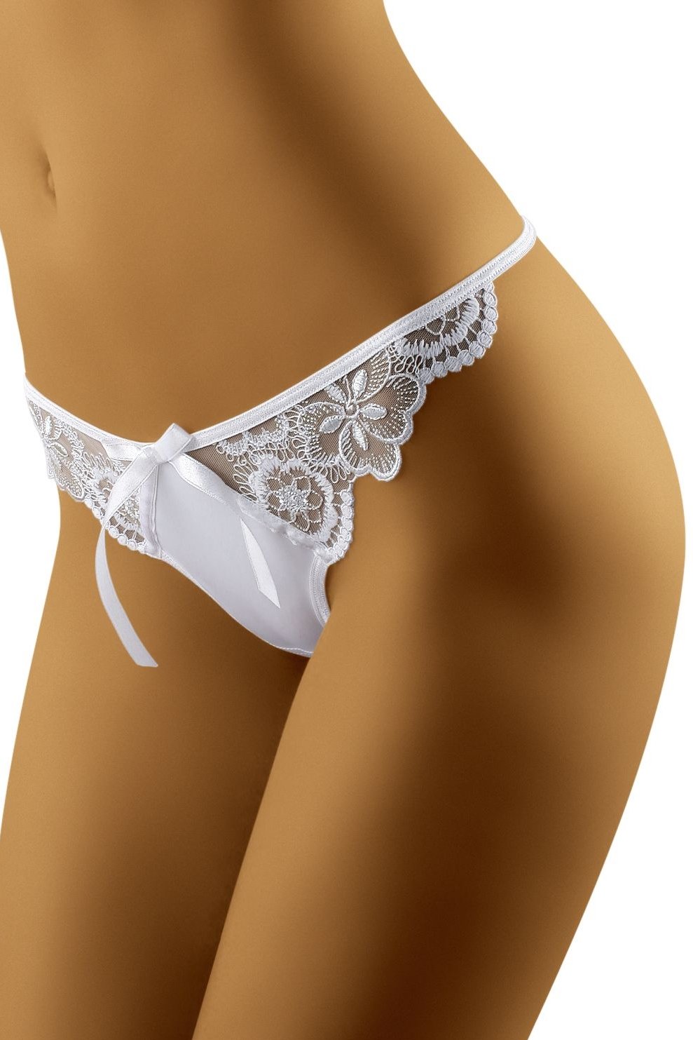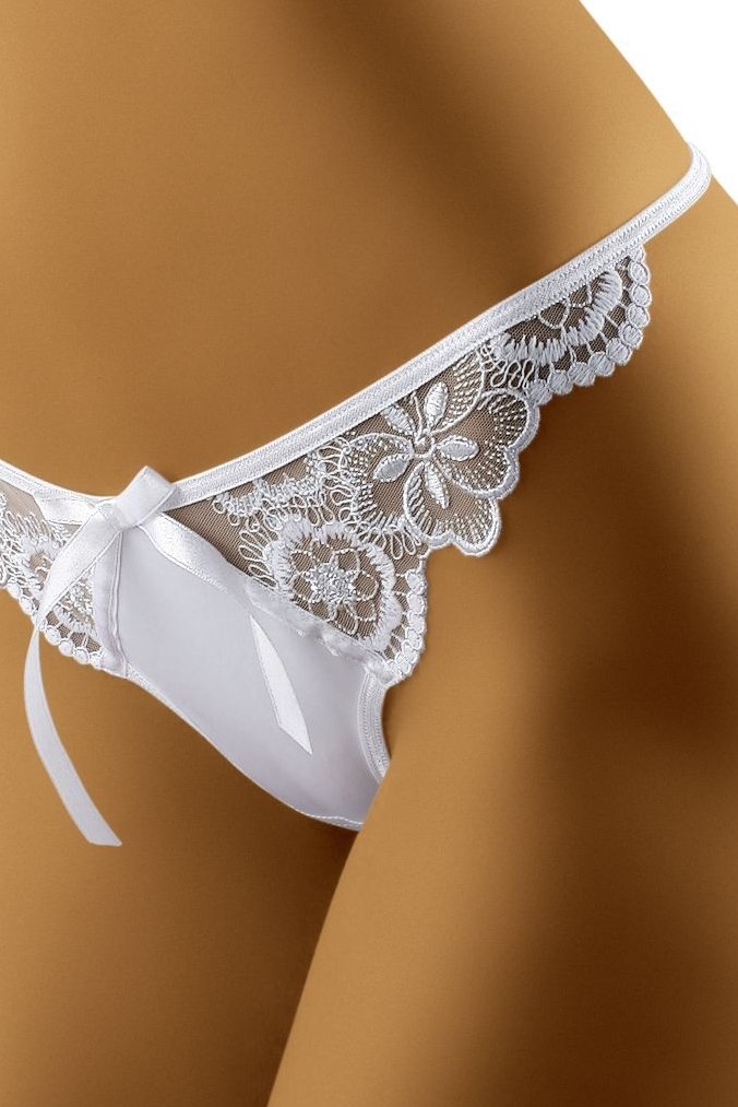 Stringy Pavana jsou uhrančivý kousek pro chvíle, kdy chcete prádlo, které zaujme na první pohled. Výrazně vykrojený střih na tenkých páscích krásně odhalí boky a opticky prodlouží nohy. Krajkové vsadky ve tvaru elegantních trojúhelníků působí lehce a rafinovaně, zatímco zadní díl doplňuje krajkový trojúhelník pro svůdný, ale vkusný dojem. Přední část je z hladké, jemně perleťové tkaniny, která prádlu dodává luxusní nádech, a celý vzhled podtrhuje efektní mašlička. Pružný materiál se pohodlně přizpůsobí postavě a drží tvar i při nošení.