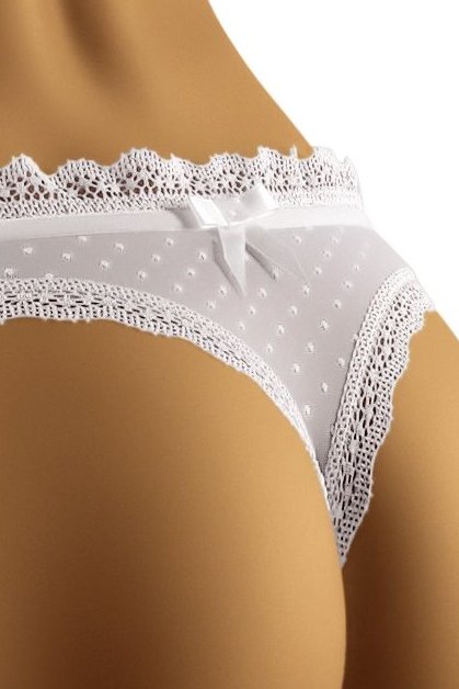 Tanga Rueda jsou vyloženě „vymazlený“ kousek pro milovnice jemné, sofistikované svůdnosti. Delikátní krajka lehce obepíná spodní i horní část prádla a vytváří vzdušný dojem, který na těle působí něžně a elegantně. Pružná tkanina s drobnými puntíky přidává hravou notu a krásně ladí s krajkovými liniemi. Zadní díl zdobí saténová mašlička – malý detail, který ale udělá velký efekt a dodá modelu „tečku nad i“. Výsledek je subtilní, ženský a stylový – prádlo, které vypadá luxusně a zároveň se příjemně nosí.