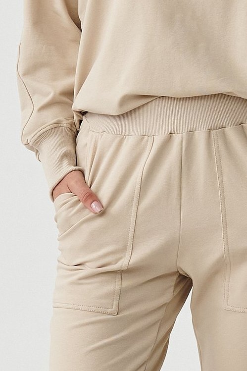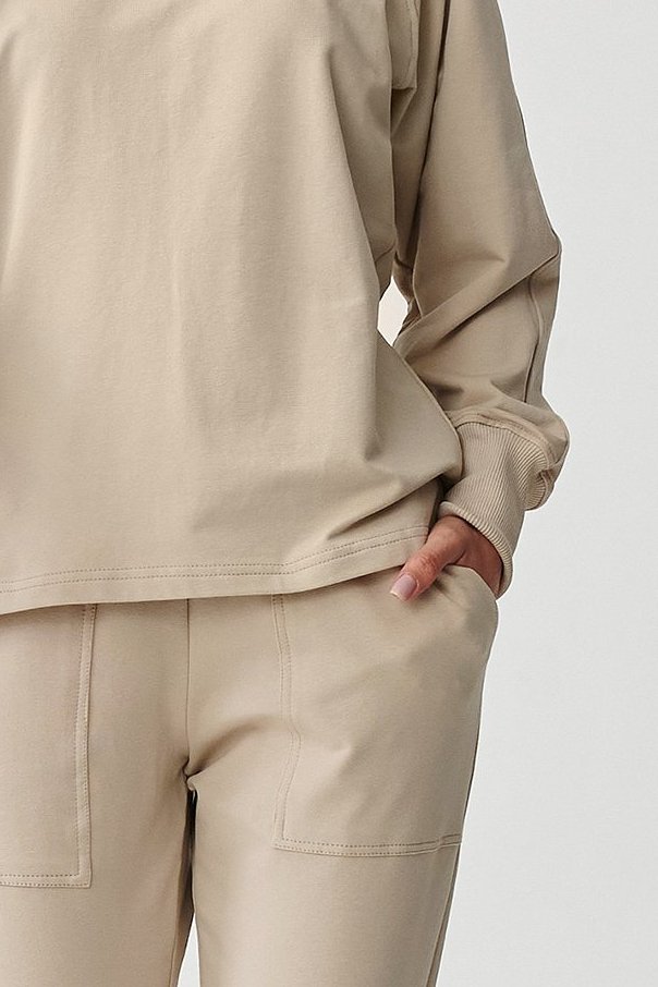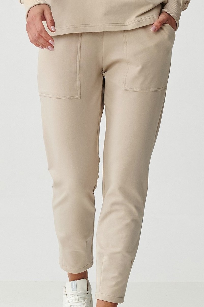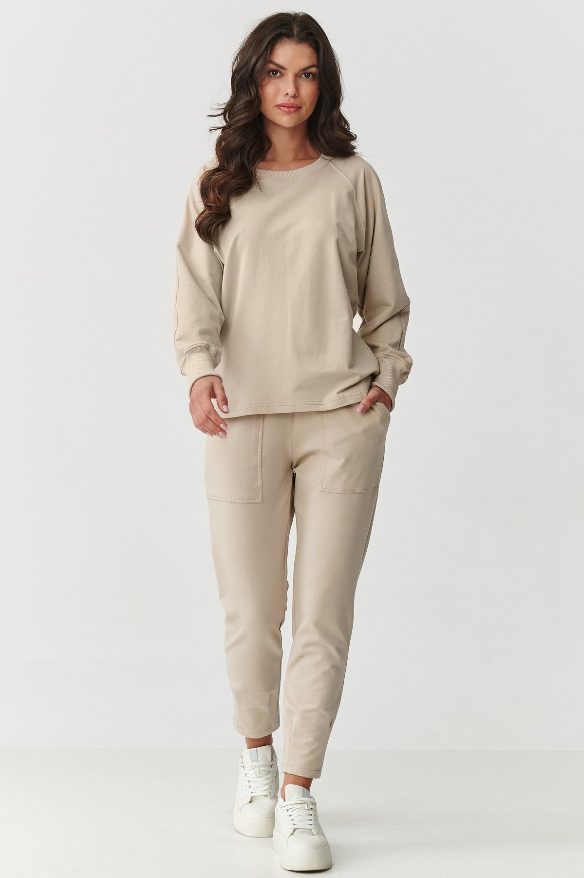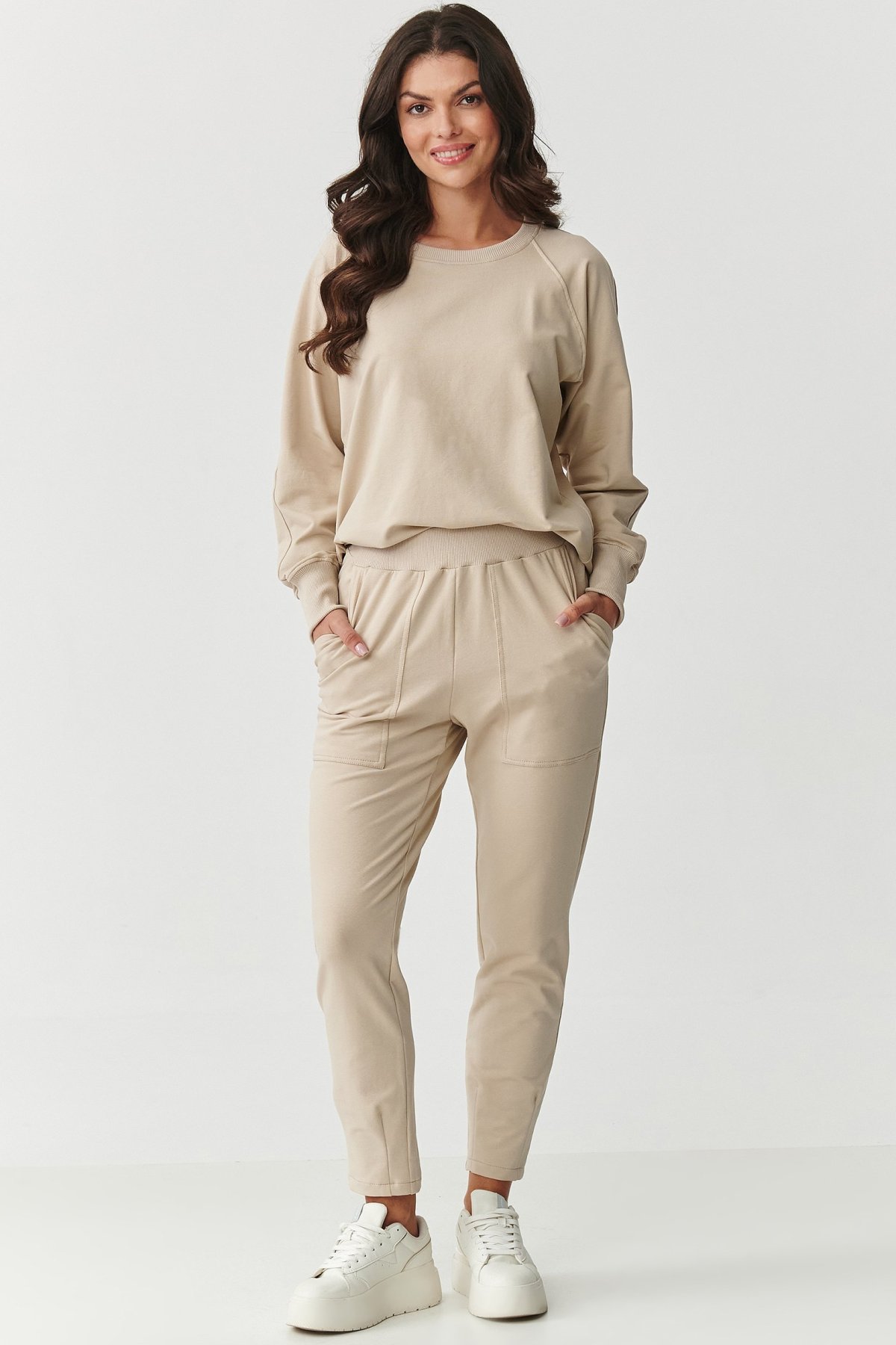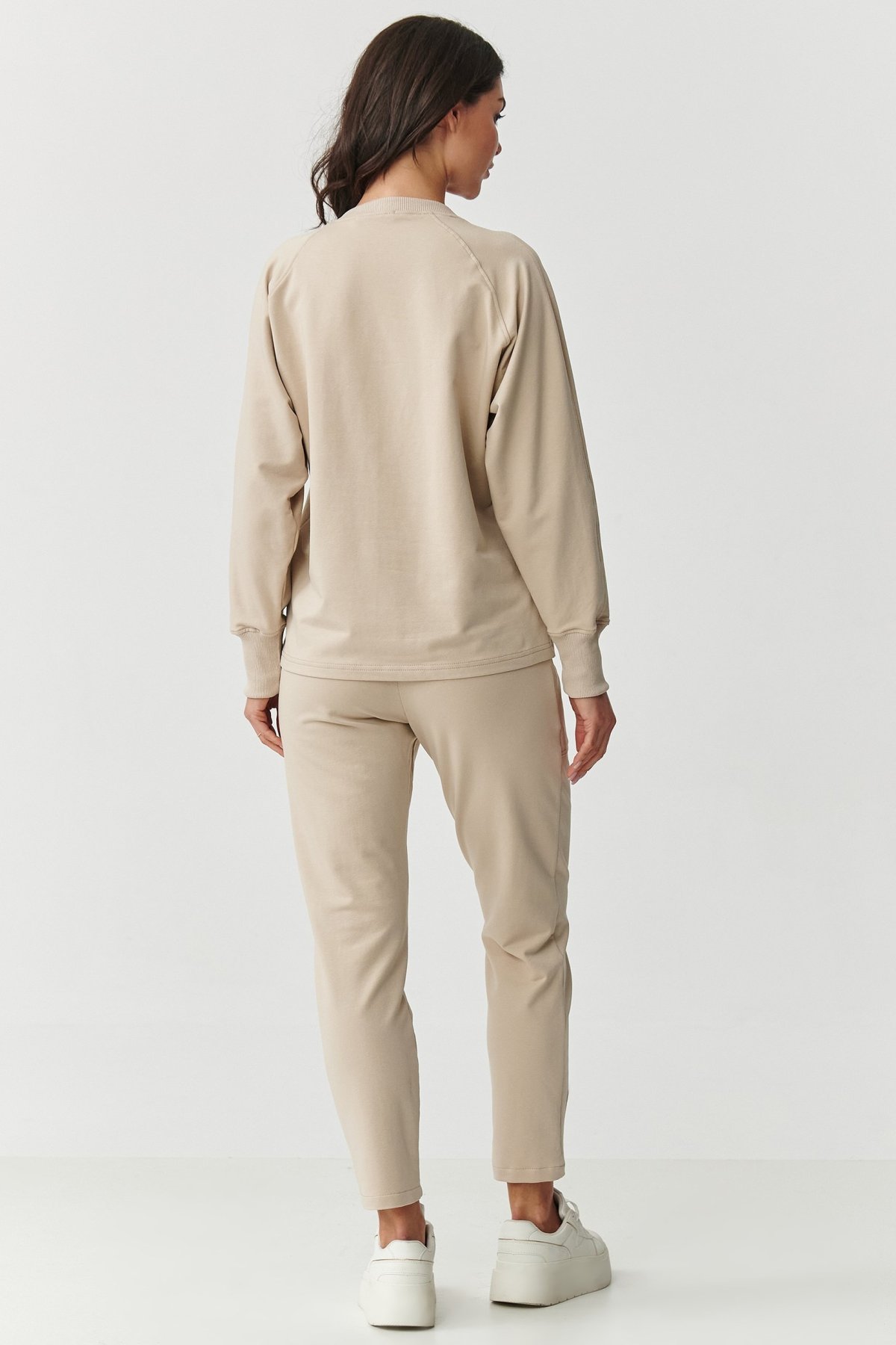 Pohodlná a stylová teplákovka! Perfektní pro ženy milující pohodlí, které však nechtějí rezignovat na moderní look. Je vyrobena z velmi kvalitní tkaniny, spojení bavlny a elastanu zaručuje jemnost, elasticitu a trvanlivost, díky tomu je komplet perfektní pro využití na doma, ale také na procházku, nákupy nebo do práce. Mikina má klasický střih s dlouhými rukávy, na jejichž koncích jsou elastické manžety. Ty tvoří sportovní prvek. Zato kulatý dekolt zvýrazňuje univerzálnost teplákovky. Klasické tepláky jsou pohodlné, díky svému střihu a prostorným kapsám nejen, že dobře vypadají, ale jsou také velice praktické. Na nohavicích jsou navíc záševky, které dodávají elegantní nádech, navíc se směrem dolů zužují. Komplet nežmolkatí, dobře snáší praní v pračce, uchovává si svůj tvar. Proto vám bude dobře sloužit, více než několik sezón. Vybírat můžete z mnoha sympatických barevných variant. Oblékněte stylový šmrnc, nebojte se tepláků a mikiny! Zamilujete si je.