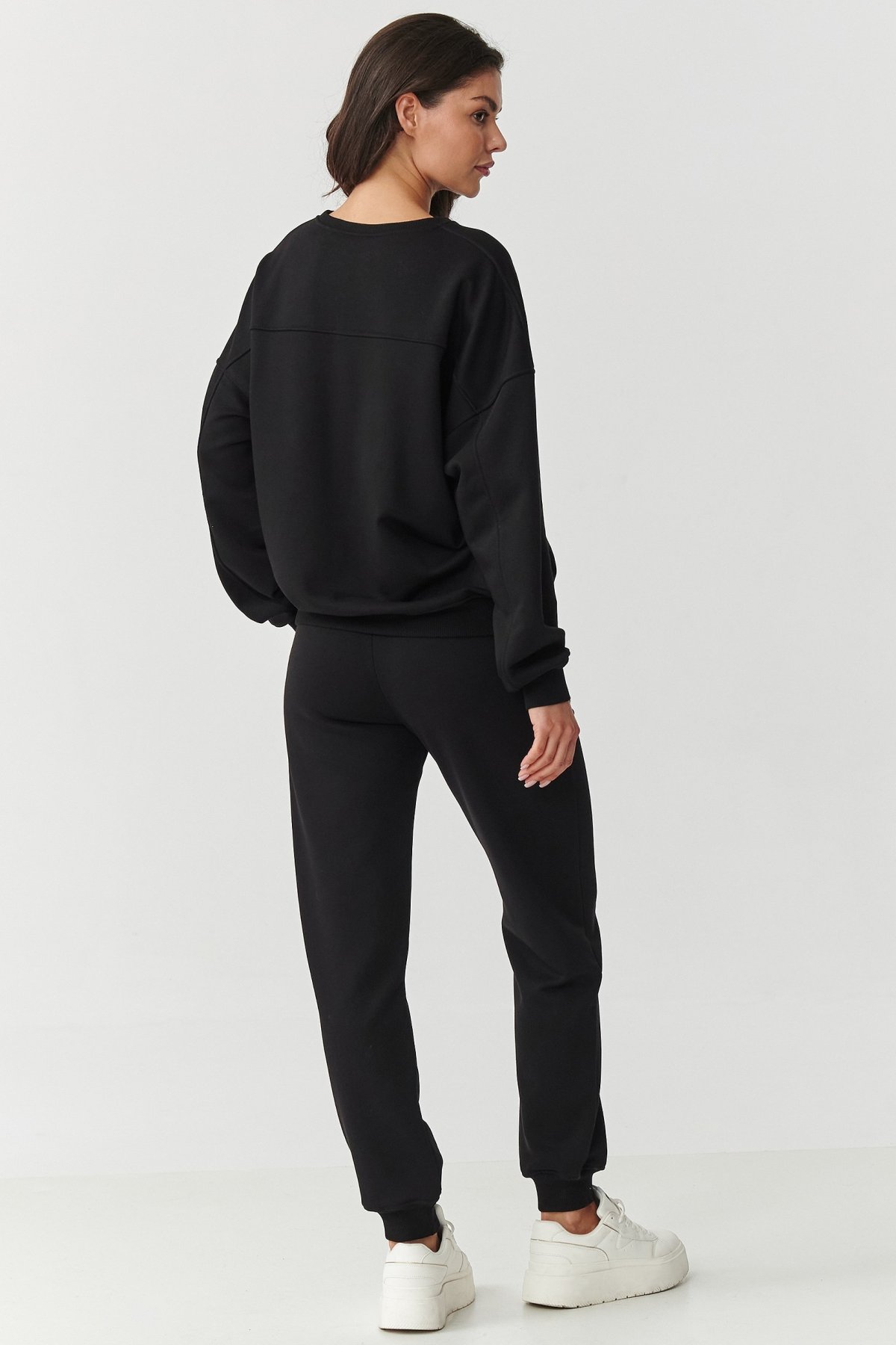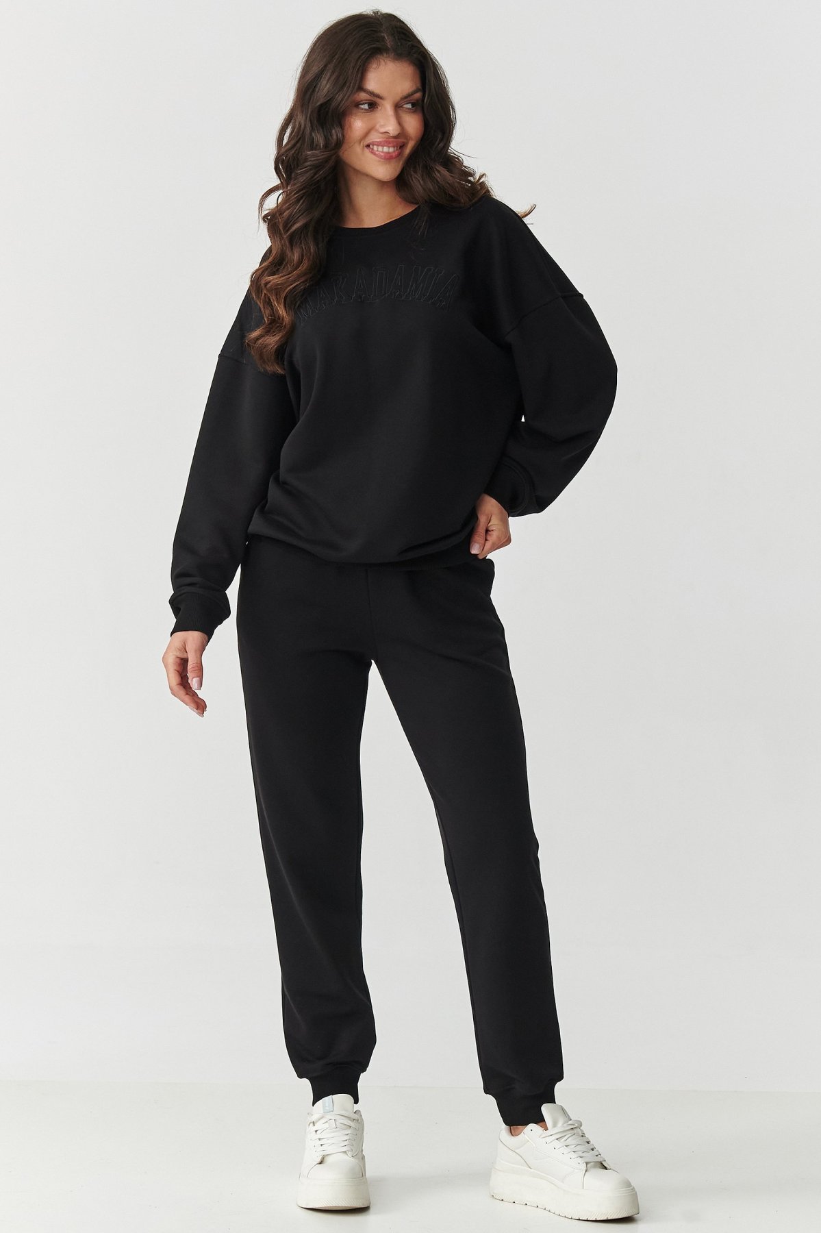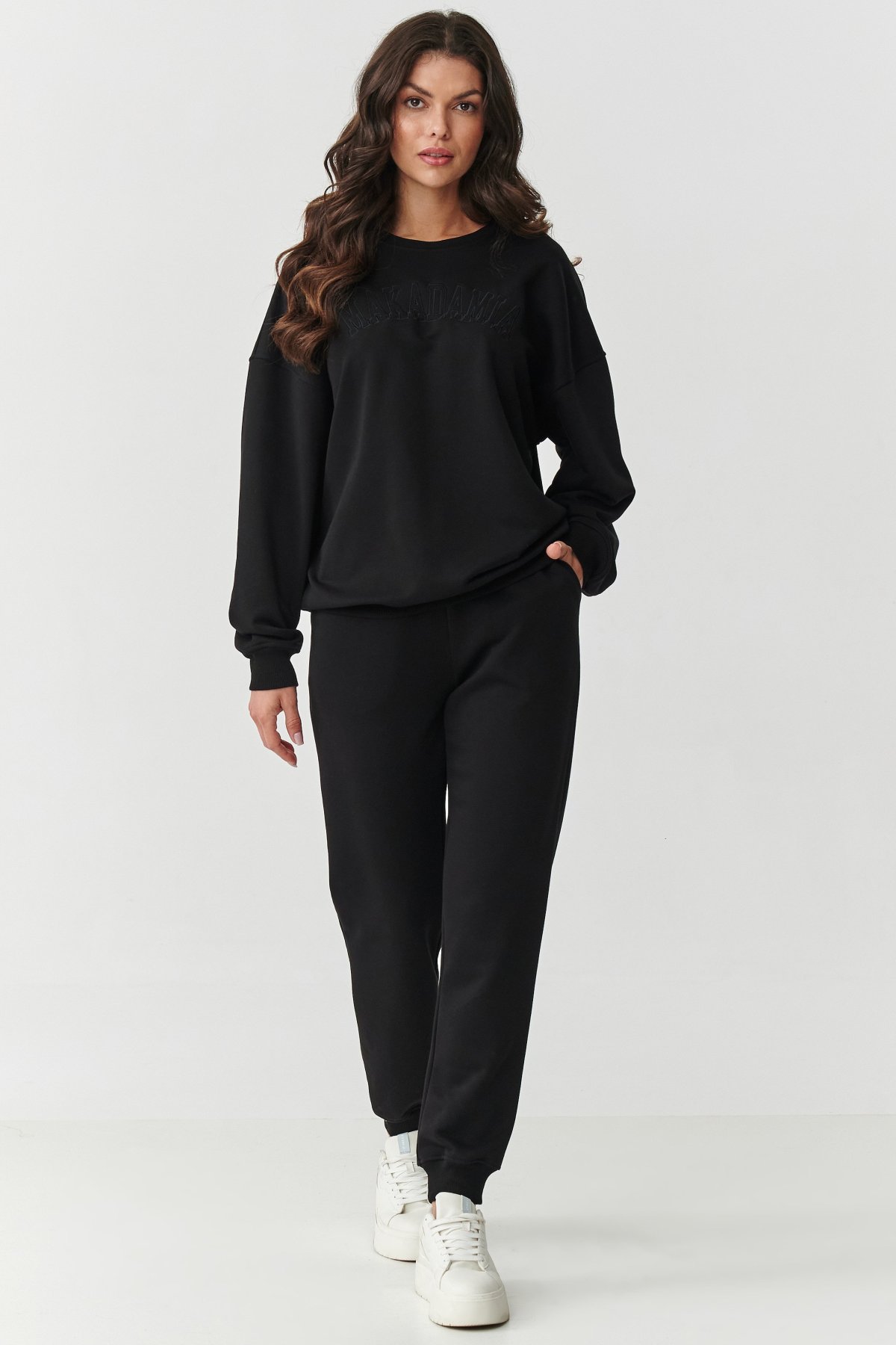 Stylový teplákový komplet, oblíbí si jej každá z vás, která miluje moderní design a výjimečný komfort během nošení. Teplákovka je vyrobena z velmi příjemné a kvalitní tkaniny. Spojení bavlny a elastanu zaručuje měkkost, elasticitu a zároveň skvělé padnutí. Ideální souprava pro každodenní nošení - ať už na doma, na procházku, nákupy nebo do práce. Vždy se budete cítit in a pohodlně. Hlavním výjimečným prvkem je velká výšivka na mikině. Díky dlouhým rukávům s elastickými manžetami a lehce sníženou linii ramen vypadá opravdu ležérně. Kulatý dekolt je rovněž doplněn elastickým lemem. Kalhoty mají pružný pas a také manžety na koncích nohavic. Perfektně padnou a zdůrazní křivky. Skvělé spojení funkcionality, stylu a pohodlí. Soupravu můžete nosit jako komplet, ale nic nebrání tomu, abyste jednotlivé kusy kombinovala samostatně. Prostě a jednoduše styl bez kompromisů! Vsaďte na tento kousek, budete opravdu spokojená.