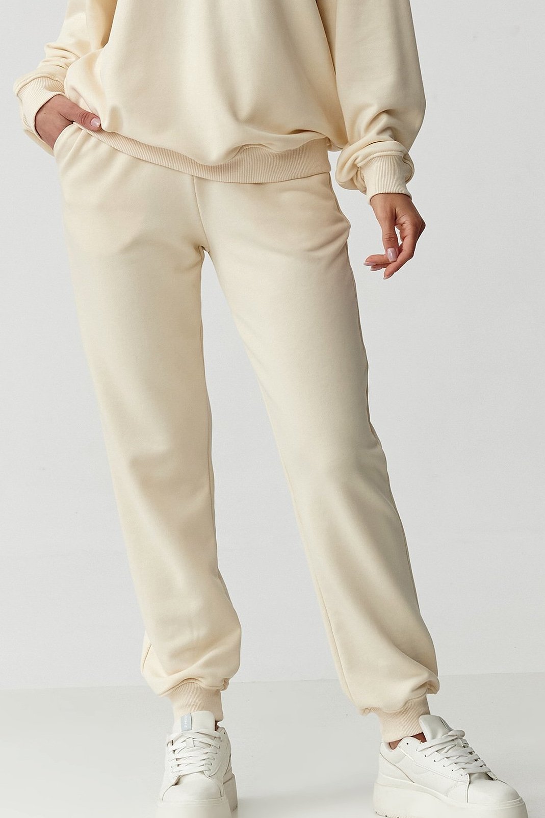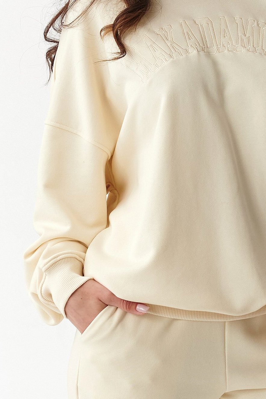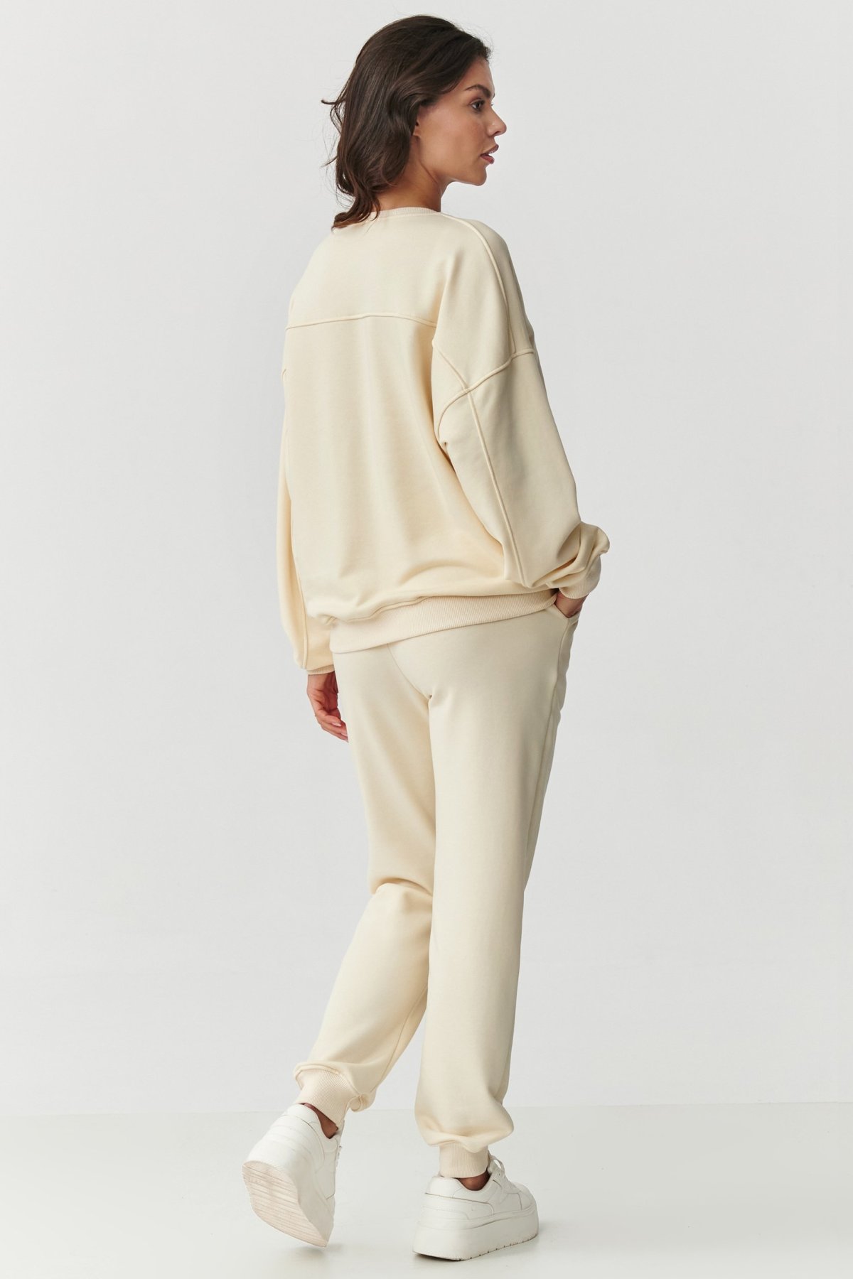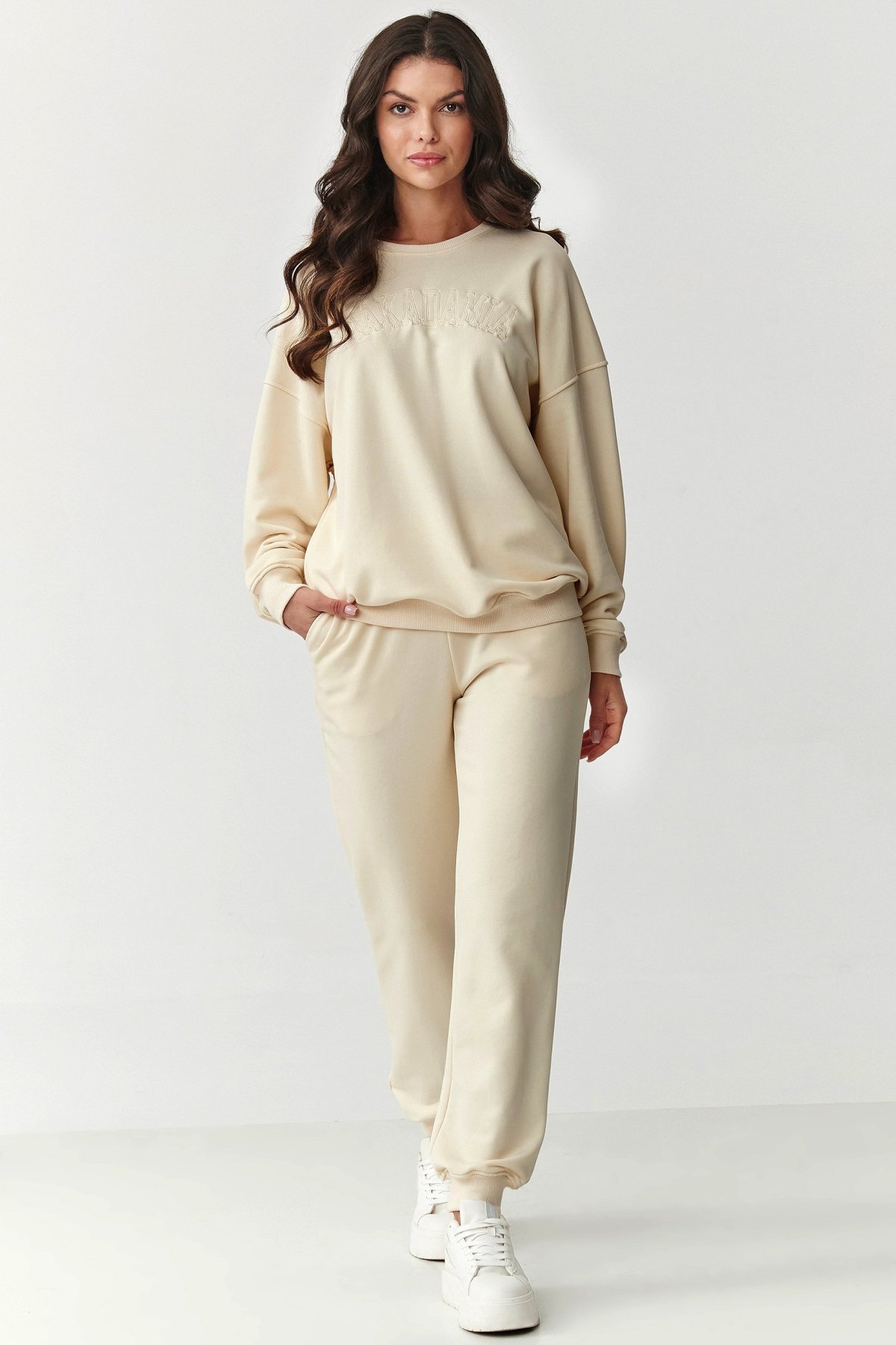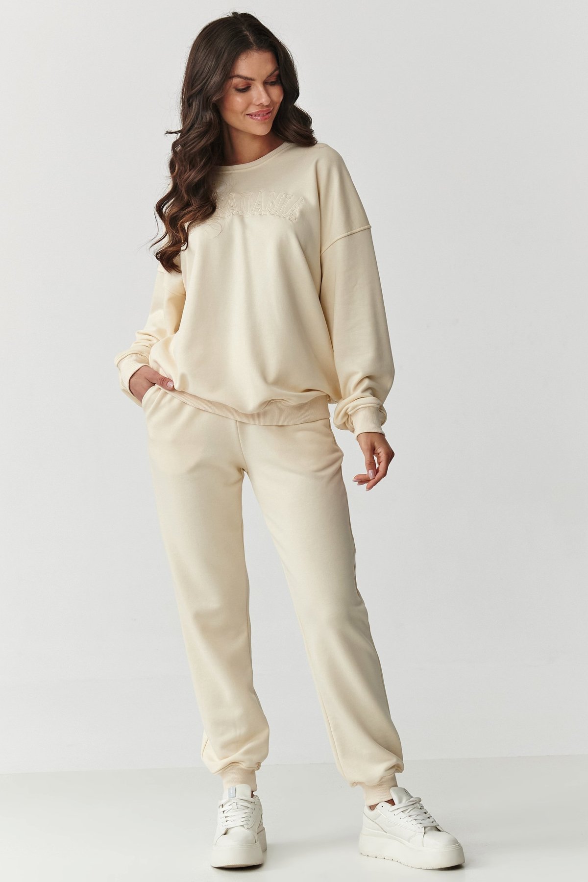 Stylový teplákový komplet, oblíbí si jej každá z vás, která miluje moderní design a výjimečný komfort během nošení. Teplákovka je vyrobena z velmi příjemné a kvalitní tkaniny. Spojení bavlny a elastanu zaručuje měkkost, elasticitu a zároveň skvělé padnutí. Ideální souprava pro každodenní nošení - ať už na doma, na procházku, nákupy nebo do práce. Vždy se budete cítit in a pohodlně. Hlavním výjimečným prvkem je velká výšivka na mikině. Díky dlouhým rukávům s elastickými manžetami a lehce sníženou linii ramen vypadá opravdu ležérně. Kulatý dekolt je rovněž doplněn elastickým lemem. Kalhoty mají pružný pas a také manžety na koncích nohavic. Perfektně padnou a zdůrazní křivky. Skvělé spojení funkcionality, stylu a pohodlí. Soupravu můžete nosit jako komplet, ale nic nebrání tomu, abyste jednotlivé kusy kombinovala samostatně. Prostě a jednoduše styl bez kompromisů! Vsaďte na tento kousek, budete opravdu spokojená.