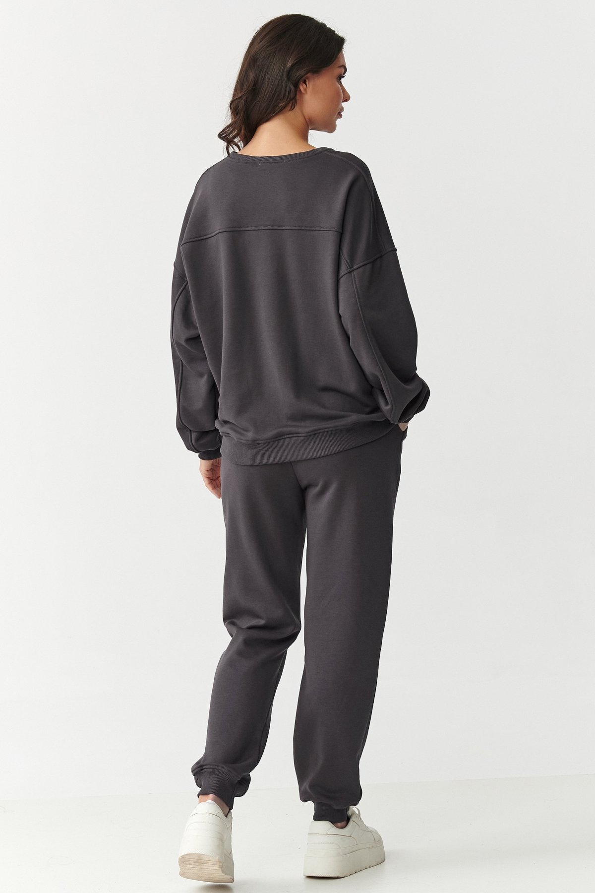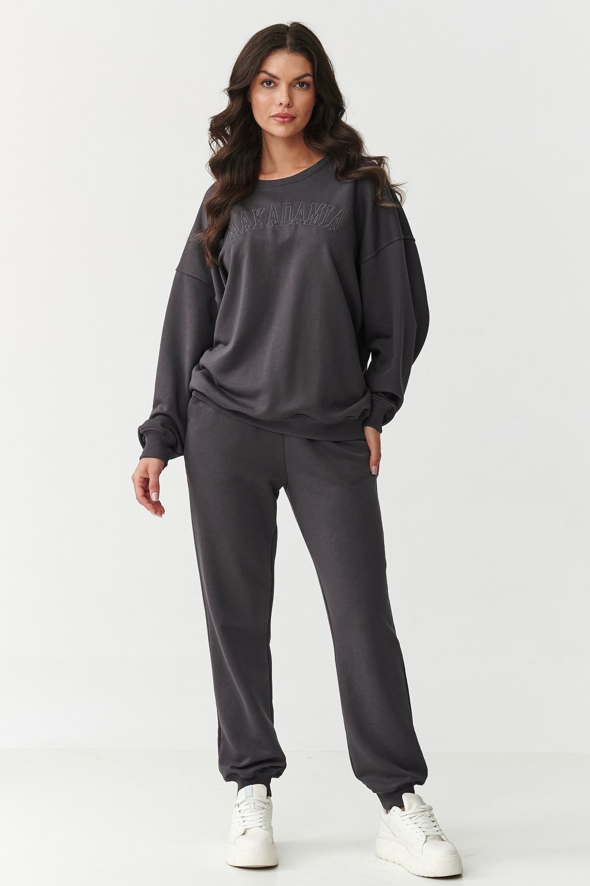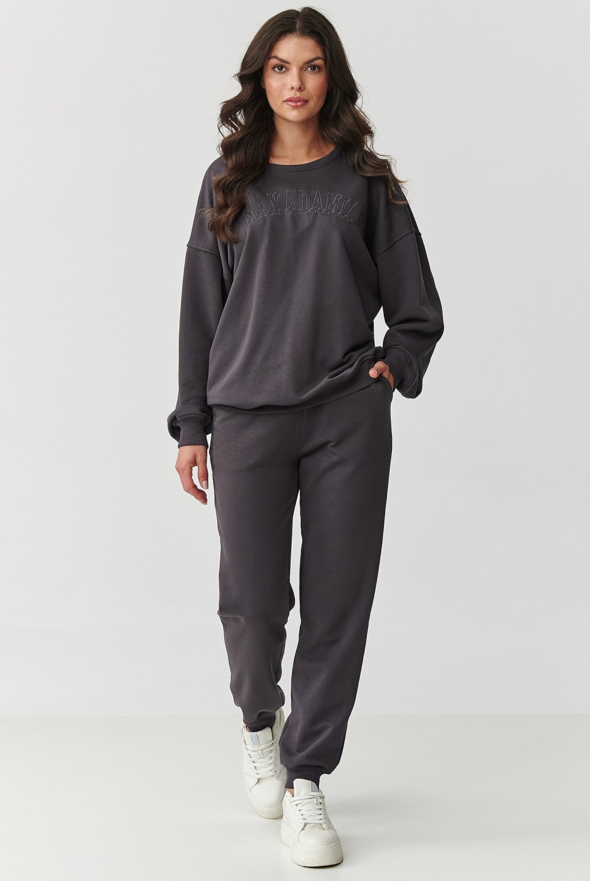 Stylový teplákový komplet, oblíbí si jej každá z vás, která miluje moderní design a výjimečný komfort během nošení. Teplákovka je vyrobena z velmi příjemné a kvalitní tkaniny. Spojení bavlny a elastanu zaručuje měkkost, elasticitu a zároveň skvělé padnutí. Ideální souprava pro každodenní nošení - ať už na doma, na procházku, nákupy nebo do práce. Vždy se budete cítit in a pohodlně. Hlavním výjimečným prvkem je velká výšivka na mikině. Díky dlouhým rukávům s elastickými manžetami a lehce sníženou linii ramen vypadá opravdu ležérně. Kulatý dekolt je rovněž doplněn elastickým lemem. Kalhoty mají pružný pas a také manžety na koncích nohavic. Perfektně padnou a zdůrazní křivky. Skvělé spojení funkcionality, stylu a pohodlí. Soupravu můžete nosit jako komplet, ale nic nebrání tomu, abyste jednotlivé kusy kombinovala samostatně. Prostě a jednoduše styl bez kompromisů! Vsaďte na tento kousek, budete opravdu spokojená.