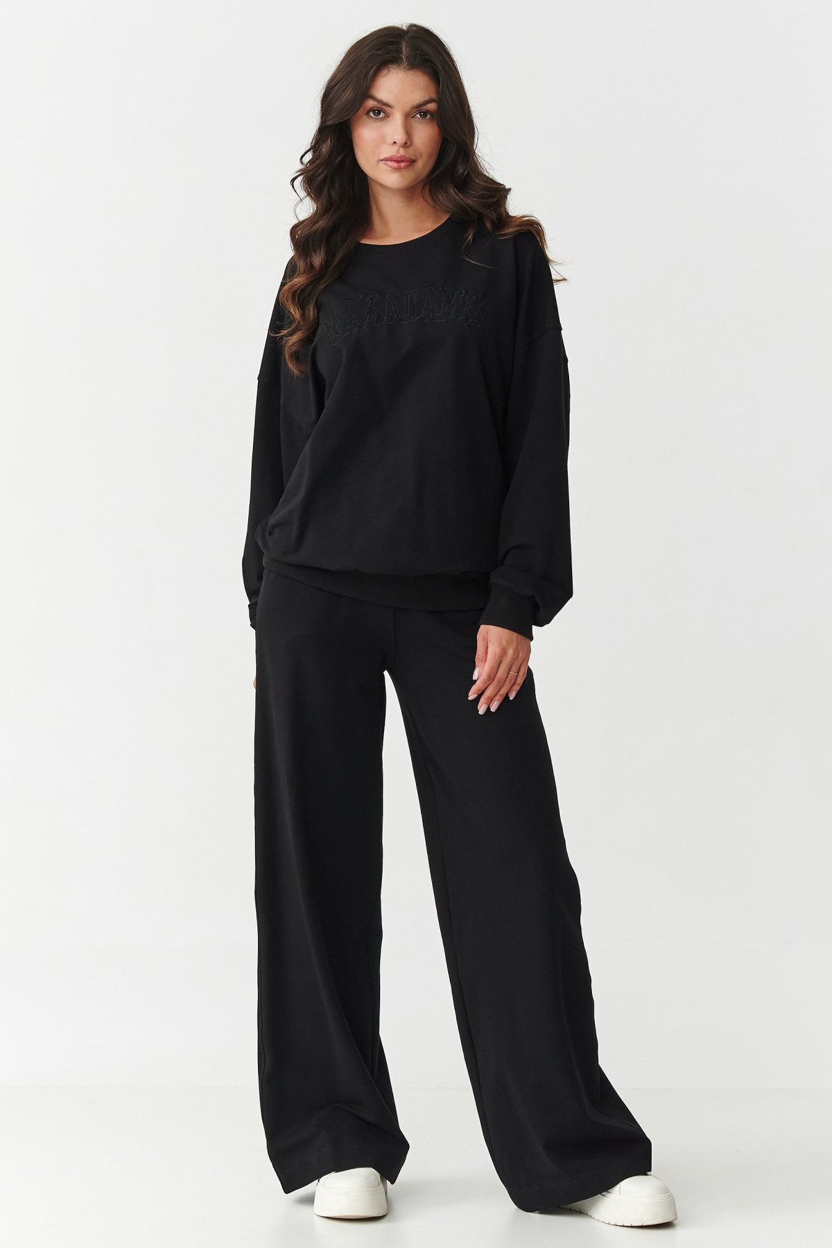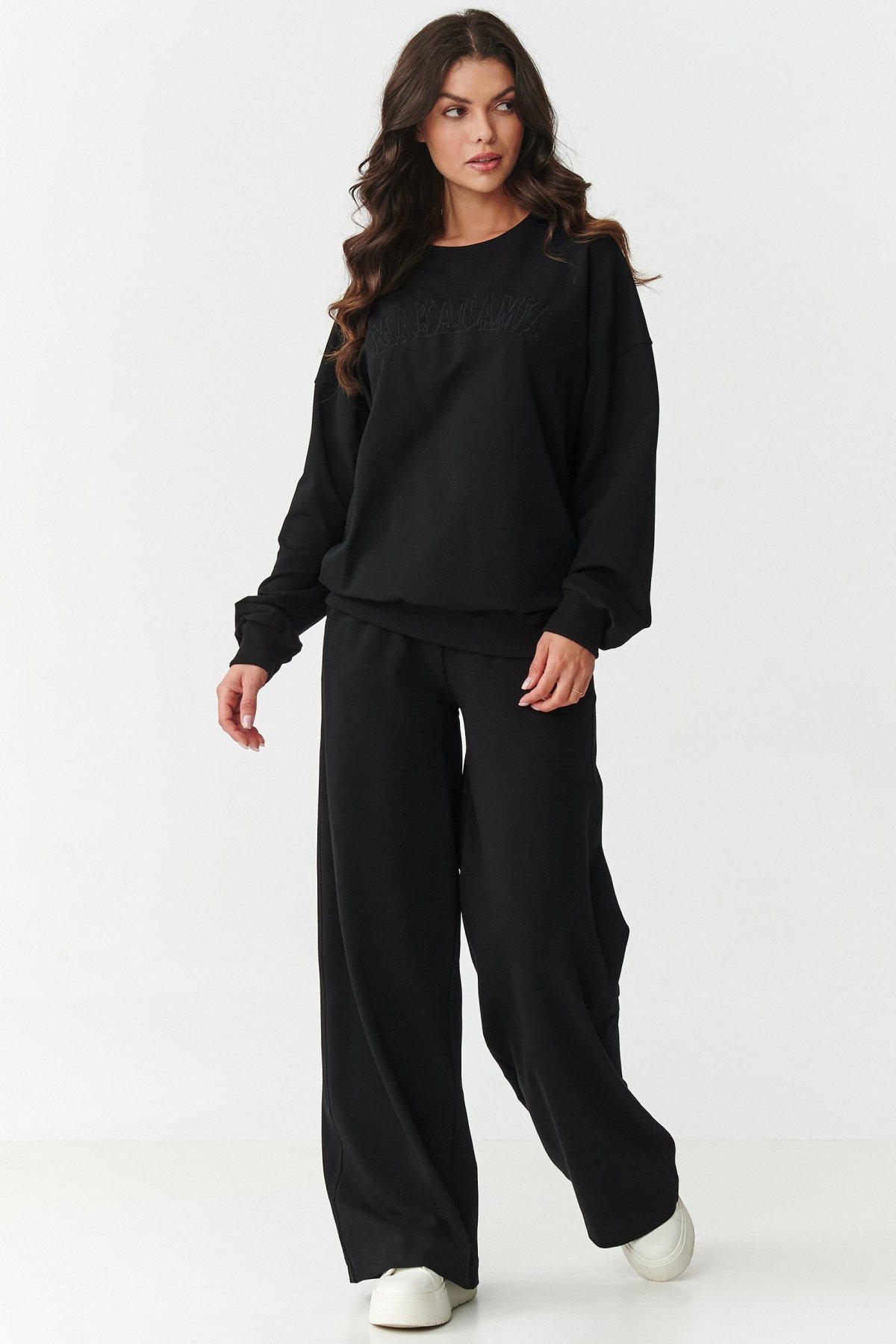 Vsaďte na perfektní spojení pohodlí a moderního vzhledu! Dámská tepláková souprava, která se hodí pro každodenní nošení, ale využijete ji i na neformální schůzky nebo jen tak pro domácí relax. Souprava je vyrobena z kombinace bavlny a elastanu. Díky tomu je zaručeno pohodlí a perfektní přizpůsobení křivkám. Mikina má klasický střih s kulatým dekoltem. Lehce snížená linie ramen vypadá žensky a stylově. Mírně oversize styl působí svěže a moderně. Výšivka na přední straně dodává ten správný šmrnc. Kalhoty jsou výjimečné samy o sobě. Mají totiž poměrně široký střih nohavic. Hezky se prezentují na křivkách v pohybu. Dodávají postavě lehkost a souměrnost. Pružný pas a praktické kapsy zvyšují jedinečnost modelu. Teplákovku si můžete vybrat ve vhodné barvě, která podtrhne vaši individualitu. Každá si najde tu pravou. Ideální komplet pro každé roční období.