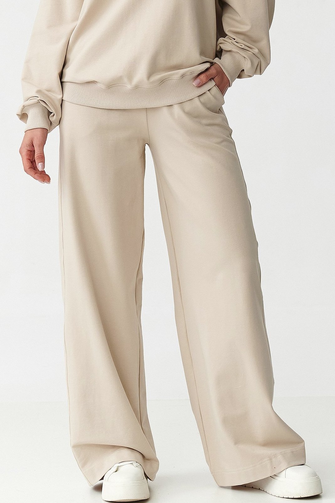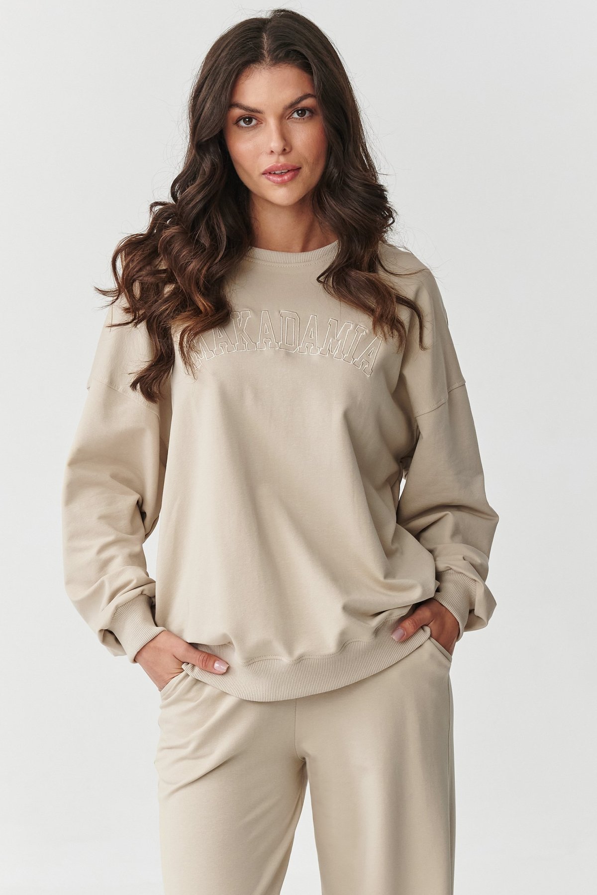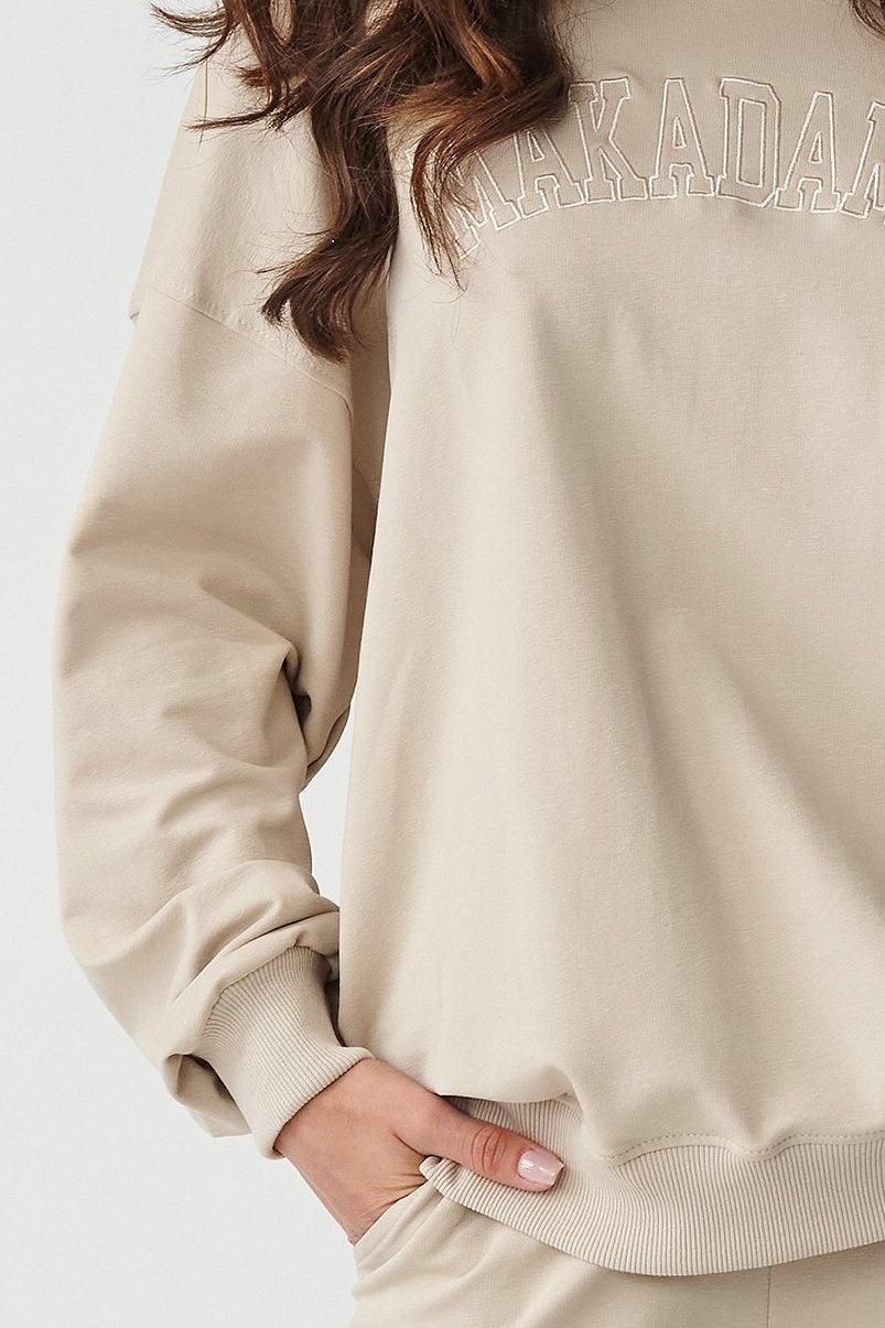 Vsaďte na perfektní spojení pohodlí a moderního vzhledu! Dámská tepláková souprava, která se hodí pro každodenní nošení, ale využijete ji i na neformální schůzky nebo jen tak pro domácí relax. Souprava je vyrobena z kombinace bavlny a elastanu. Díky tomu je zaručeno pohodlí a perfektní přizpůsobení křivkám. Mikina má klasický střih s kulatým dekoltem. Lehce snížená linie ramen vypadá žensky a stylově. Mírně oversize styl působí svěže a moderně. Výšivka na přední straně dodává ten správný šmrnc. Kalhoty jsou výjimečné samy o sobě. Mají totiž poměrně široký střih nohavic. Hezky se prezentují na křivkách v pohybu. Dodávají postavě lehkost a souměrnost. Pružný pas a praktické kapsy zvyšují jedinečnost modelu. Teplákovku si můžete vybrat ve vhodné barvě, která podtrhne vaši individualitu. Každá si najde tu pravou. Ideální komplet pro každé roční období.