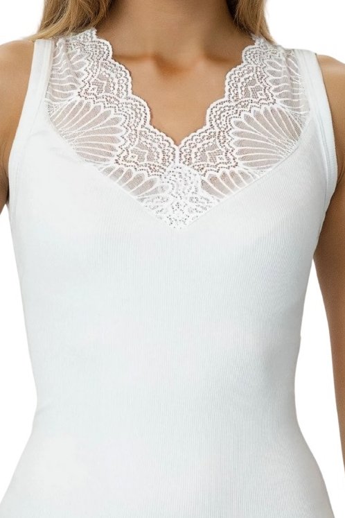 Model Marcela spojuje pohodlí na každý den s elegantním dojmem, který udělá rozdíl i u jednoduché stylizace. V-kový dekolt lemuje výraznější krajka s originálním „vějířovým“ motivem – jemně odhalí kůži, zvýrazní krk a působí upraveně i bez šperků. Viskóza je příjemně měkká, dobře dýchá a na těle je hladká, takže se skvěle nosí i pod svetrem nebo košilí. Díky příměsi elastanu a polyamidu top hezky pruží, drží tvar a nikde netlačí. Využijete ho jako elegantní noční košilku, komfortní spodní prádlo i jako čistý, ženský top pod blazer ve stylu smart casual.