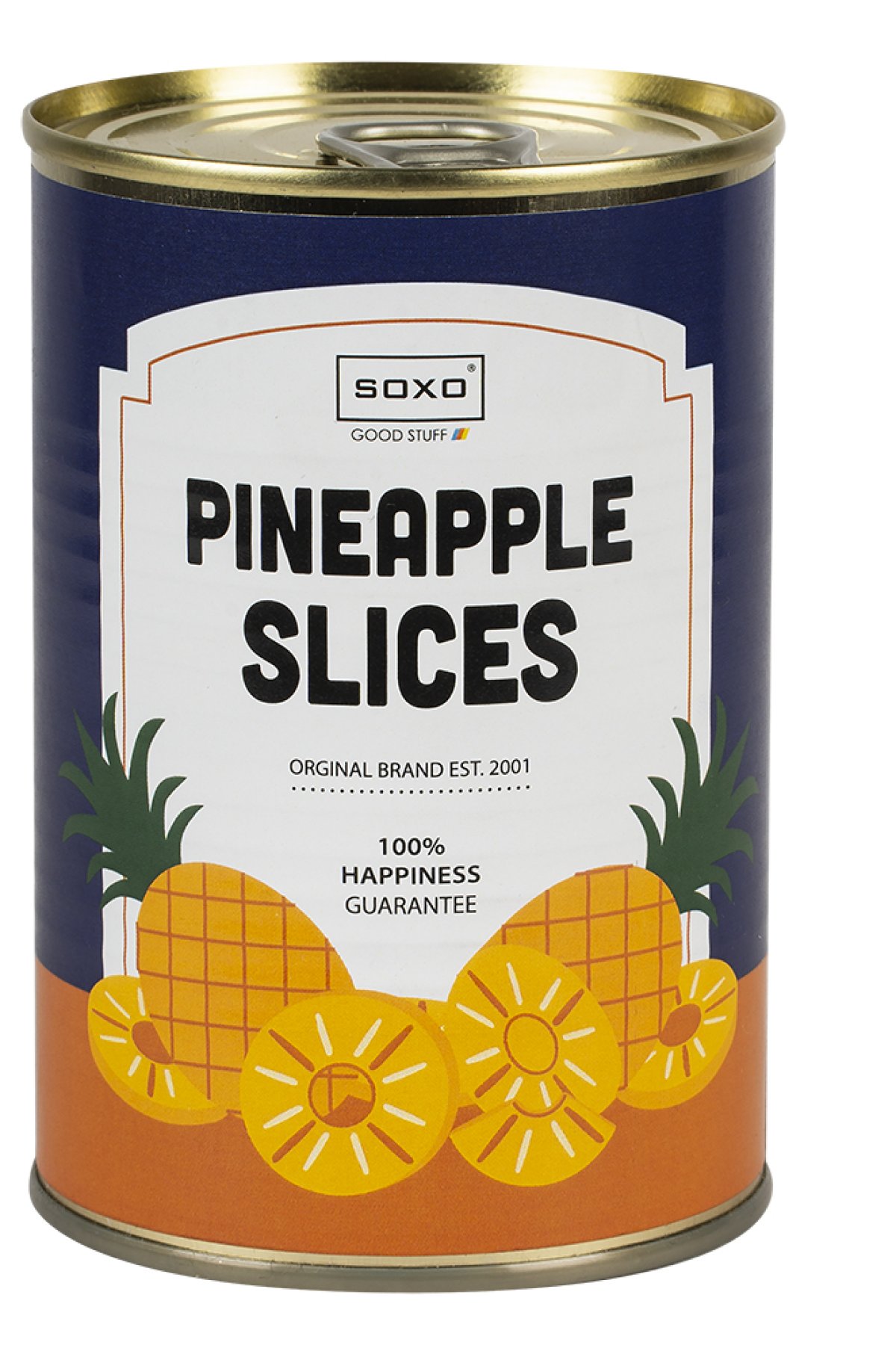 Retro ananasová konzerva po otevření víčka v sobě ukrývá vtipné ponožky.