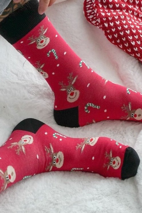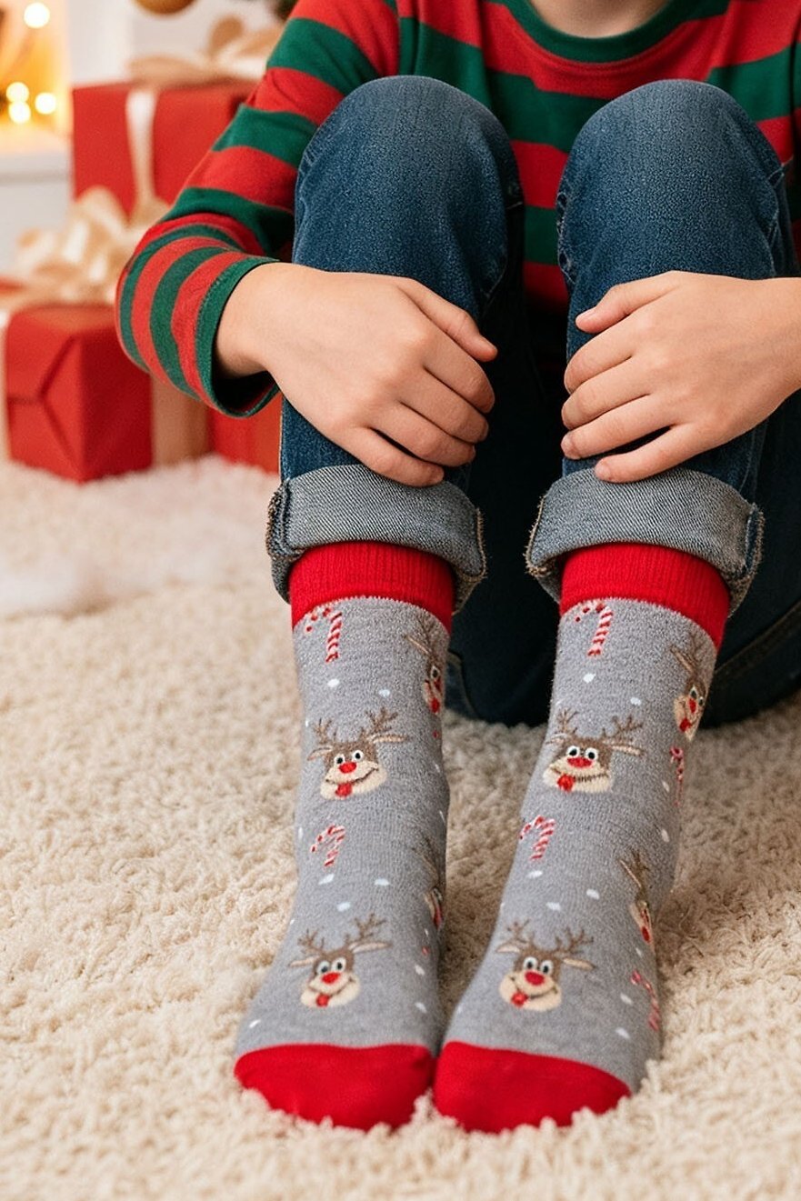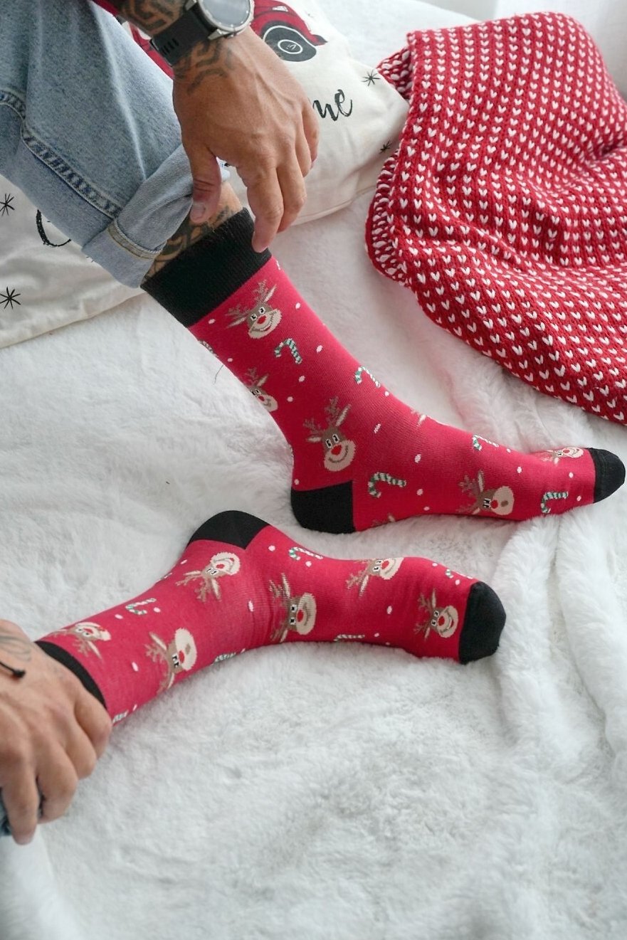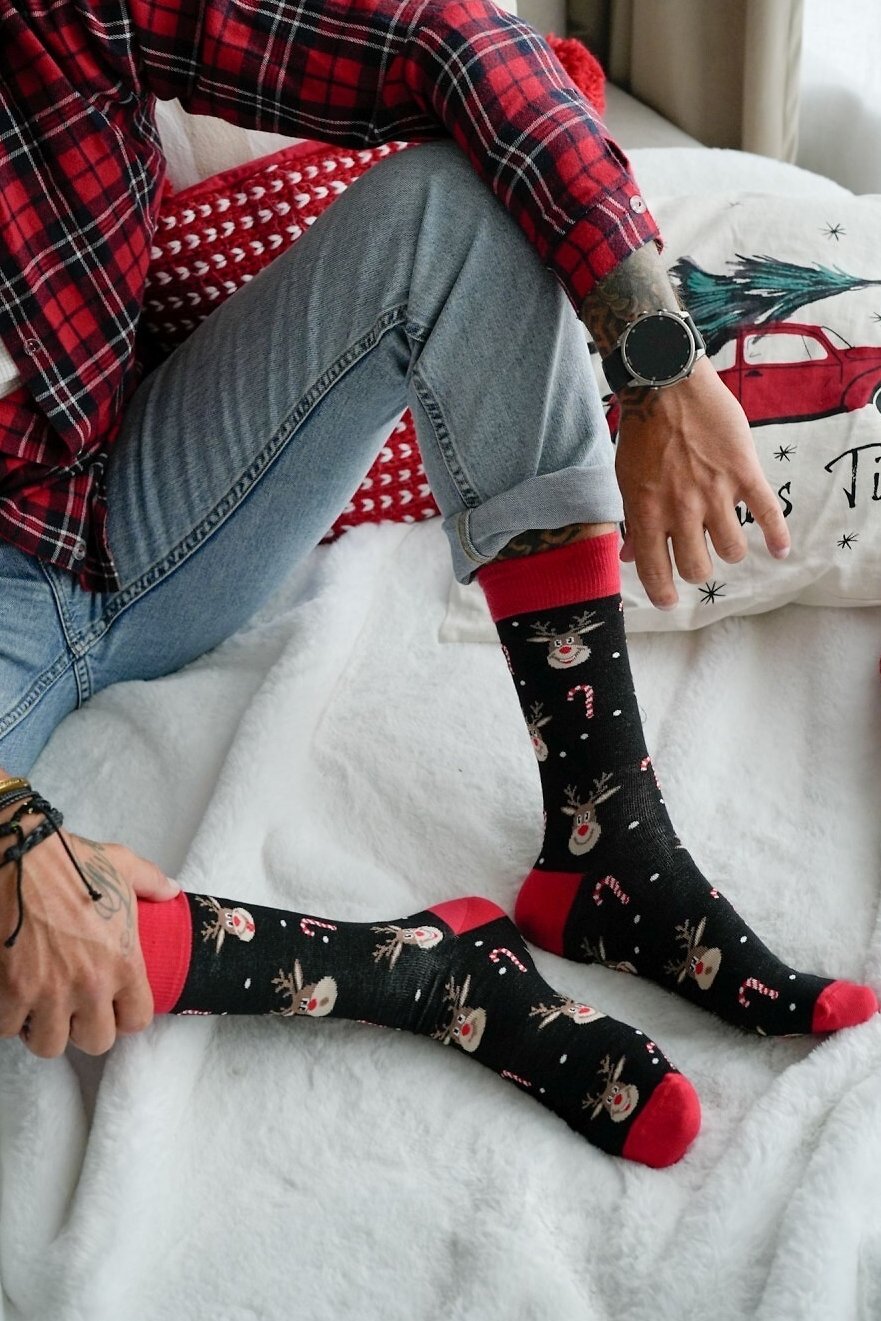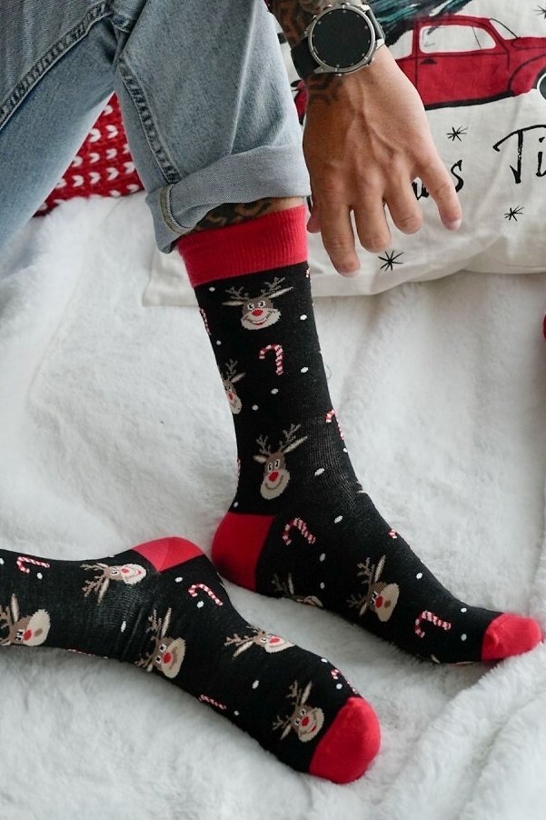 Vánoční pánské ponožky přinášejí sváteční atmosféru a hravý styl do každodenního outfitu. Jsou vyrobeny z vysoce kvalitní bavlněné směsi, která zajišťuje dokonalé pohodlí, měkkost a prodyšnost. Elastický lem drží ponožky na místě, aniž by tlačil, a díky příměsi elastanu perfektně sedí na noze. Veselý vánoční vzor se soby a stromky dodává ponožkám osobitý charakter – ideální pro domácí pohodu i jako drobný dárek pod stromeček. Praktický a stylový doplněk, který potěší každého muže s citem pro detail i humor.