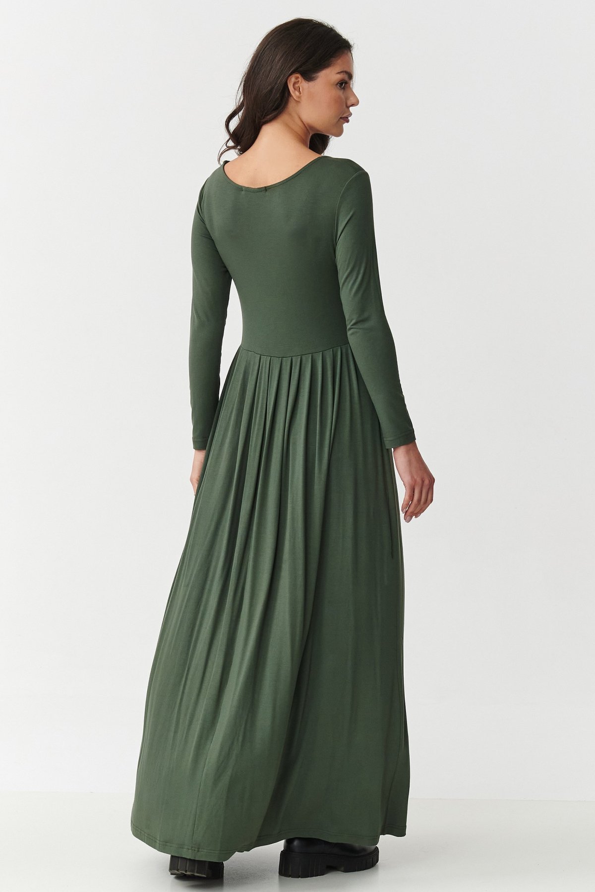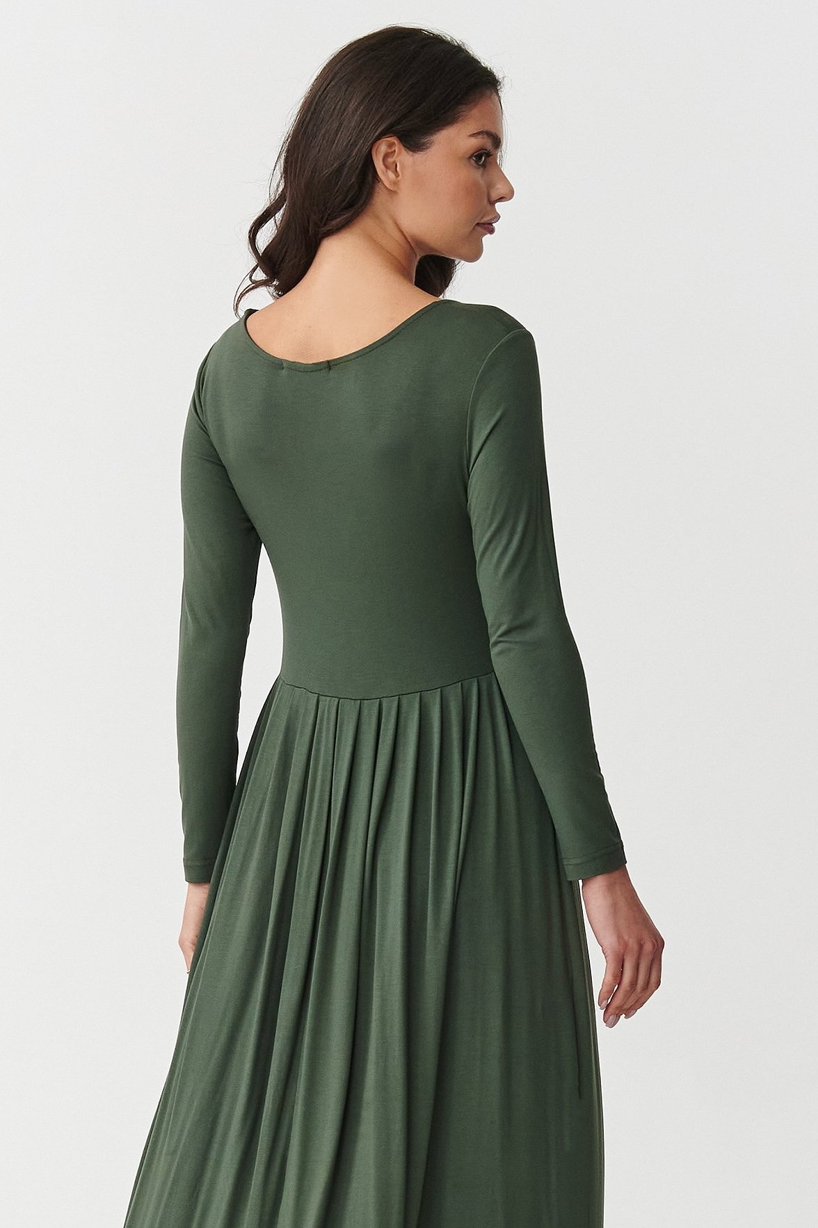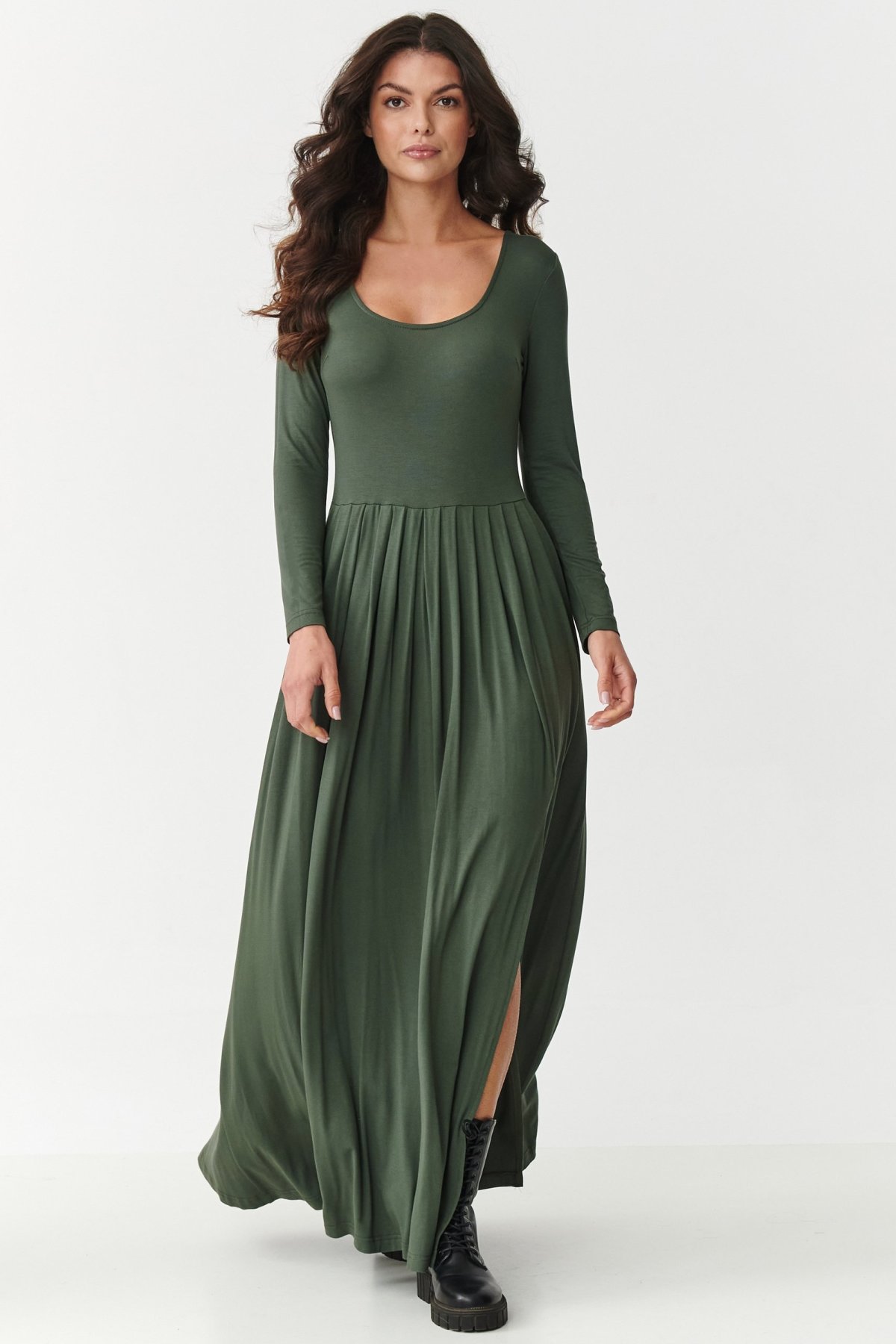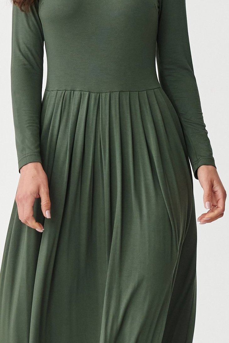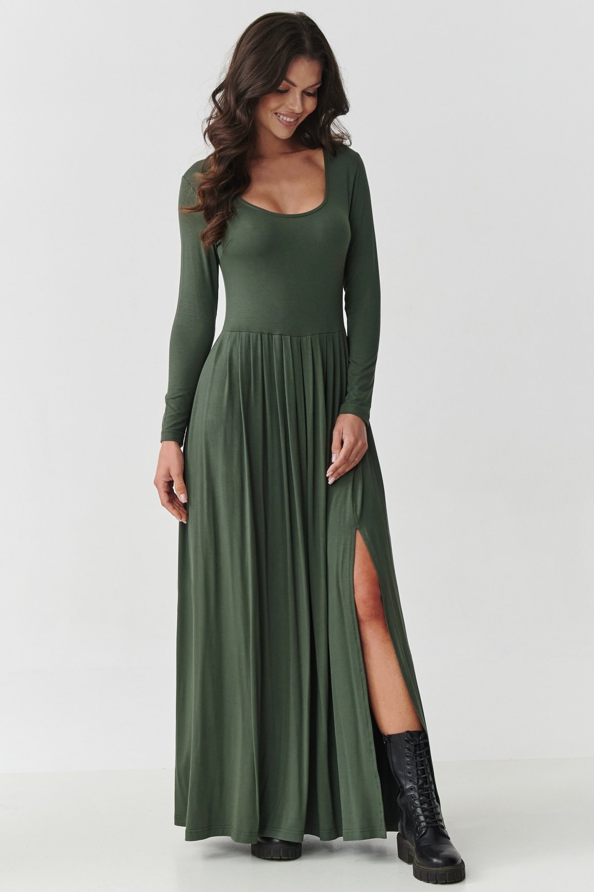 Dlouhé šaty jednoduchého, ale elegantního střihu. Skvělý tip pro dámy hledající pohodlí a styl v jednom kousku. Šaty jsou vyrobeny z lehké a příjemné viskózy, která zaručuje komfort během celodenního nošení. Střih šatů je neuvěřitelně univerzální a nadčasový. Spojuje klasický styl s moderními akcenty. Vrchní část šatů je přiléhavá a krásně zvýrazňuje postavu. Zato spodní část je zcela volná, lehce rozevlátá a rafinovaně zahalí drobné nedostatky. Na straně je smyslný rozparek. Dlouhé rukávy dodávají celku eleganci a dělají z šatů perfektní kousek do chladnějších dní. Díky všem těmto prvkům se z šatů stává všestranný kousek - hodí se na celodenní nošení, schůzky, večerní posezení i pro neformální příležitosti. Ženské, pohodlné, stylové. Vybírat můžete z mnoha barev.