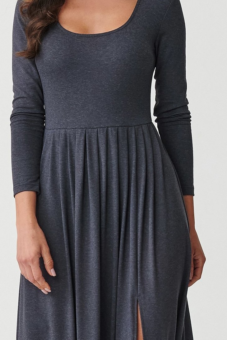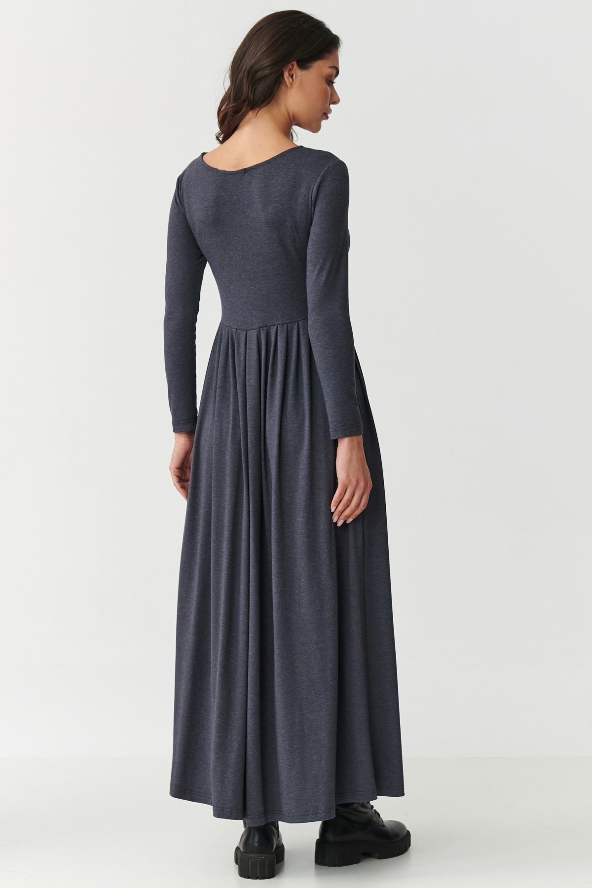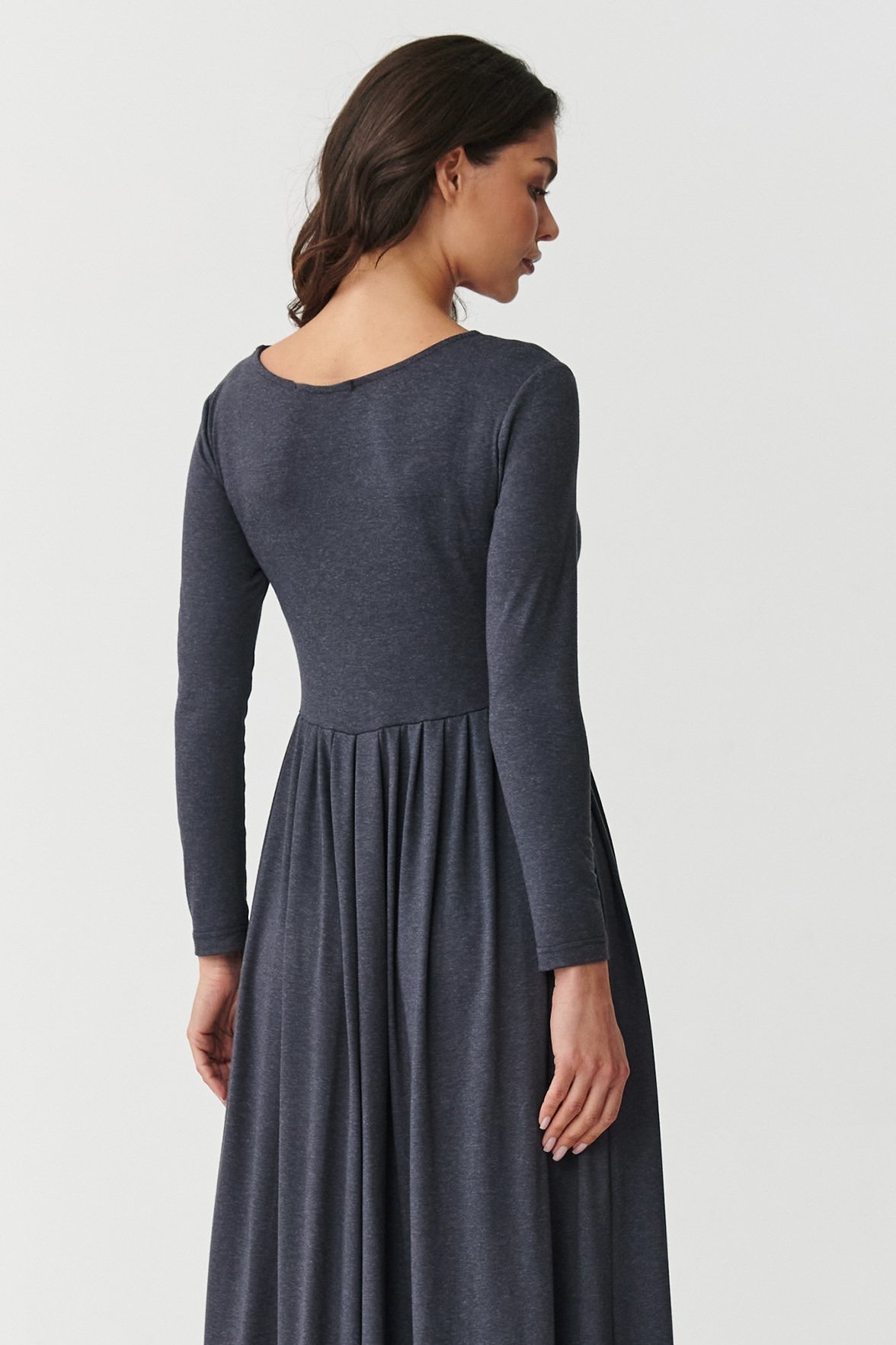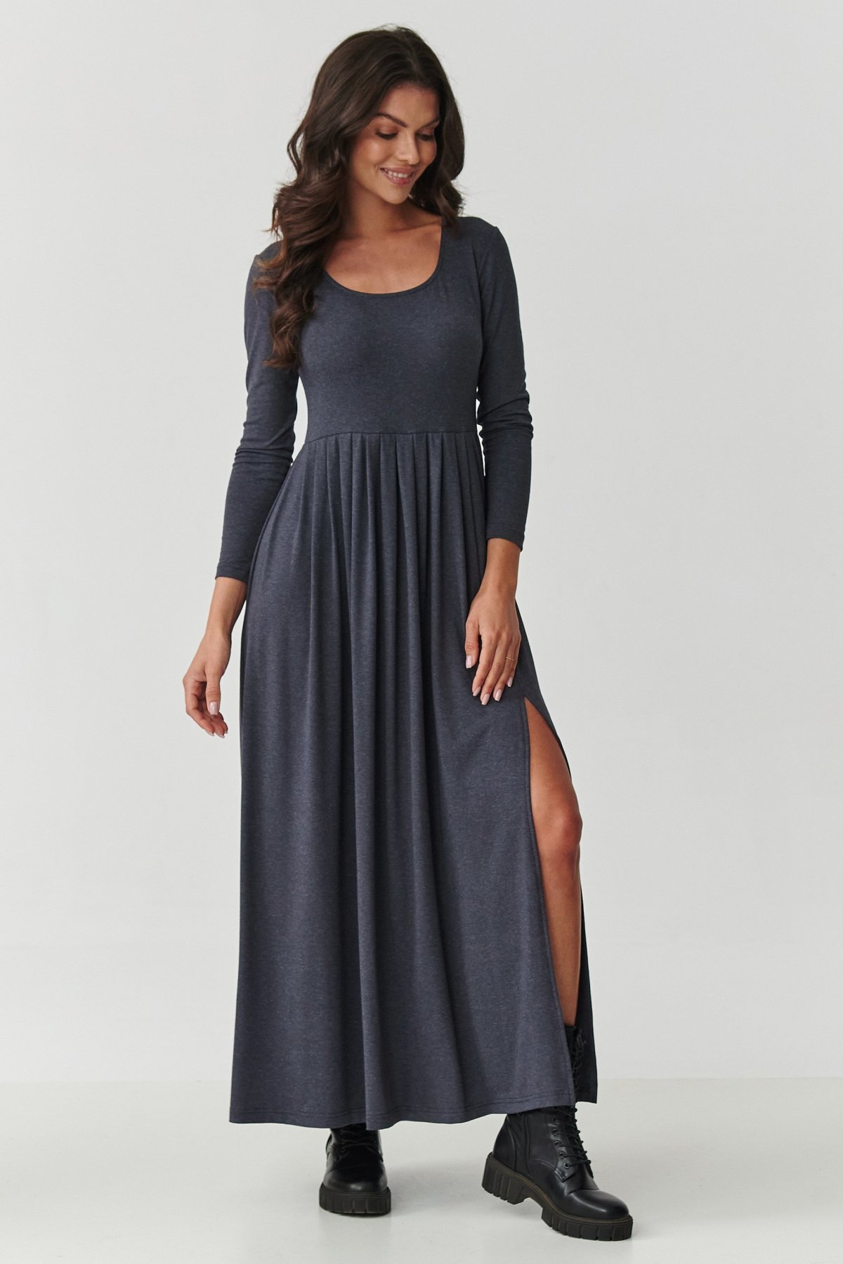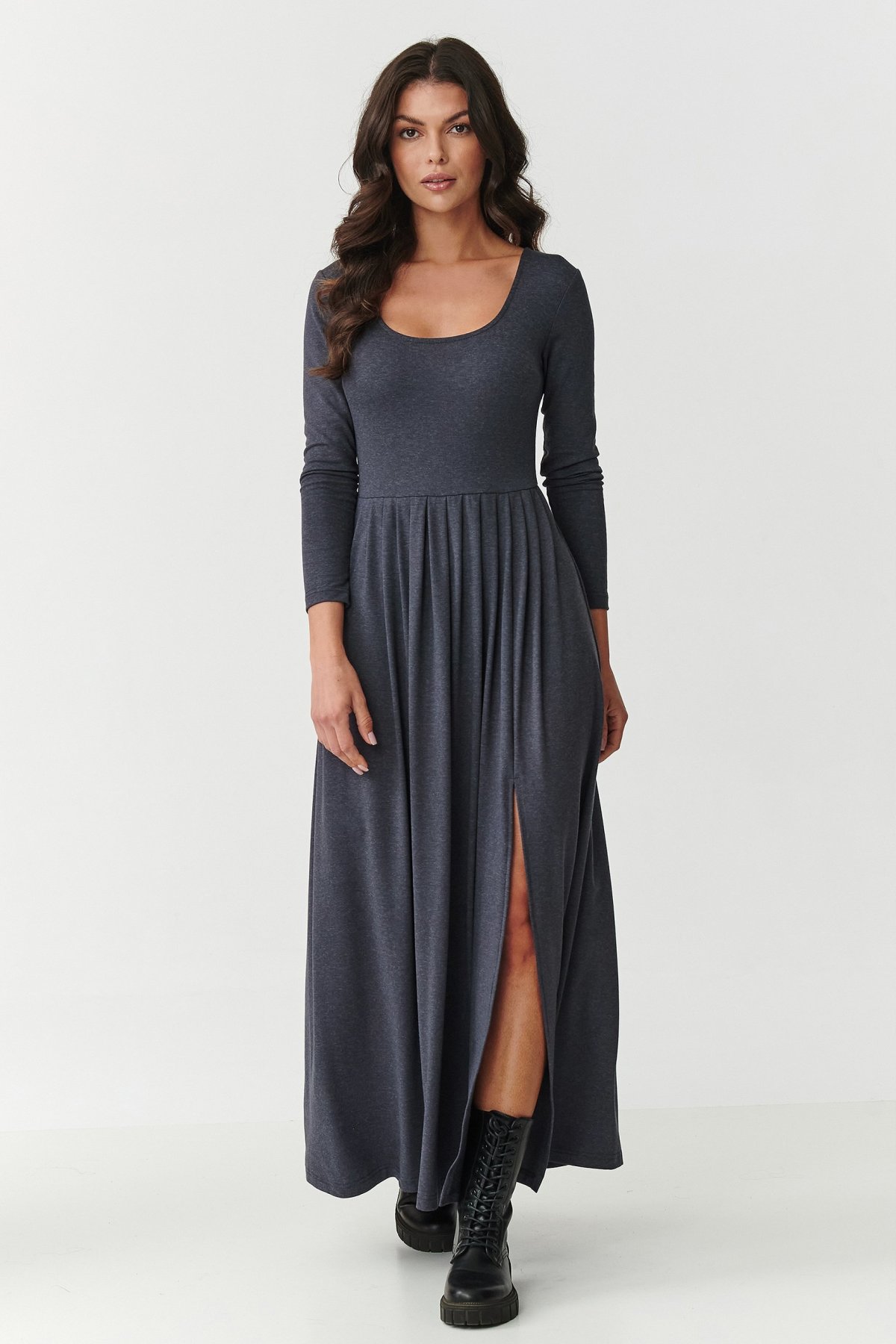 Dlouhé šaty jednoduchého, ale elegantního střihu. Skvělý tip pro dámy hledající pohodlí a styl v jednom kousku. Šaty jsou vyrobeny z lehké a příjemné viskózy, která zaručuje komfort během celodenního nošení. Střih šatů je neuvěřitelně univerzální a nadčasový. Spojuje klasický styl s moderními akcenty. Vrchní část šatů je přiléhavá a krásně zvýrazňuje postavu. Zato spodní část je zcela volná, lehce rozevlátá a rafinovaně zahalí drobné nedostatky. Na straně je smyslný rozparek. Dlouhé rukávy dodávají celku eleganci a dělají z šatů perfektní kousek do chladnějších dní. Díky všem těmto prvkům se z šatů stává všestranný kousek - hodí se na celodenní nošení, schůzky, večerní posezení i pro neformální příležitosti. Ženské, pohodlné, stylové. Vybírat můžete z mnoha barev.