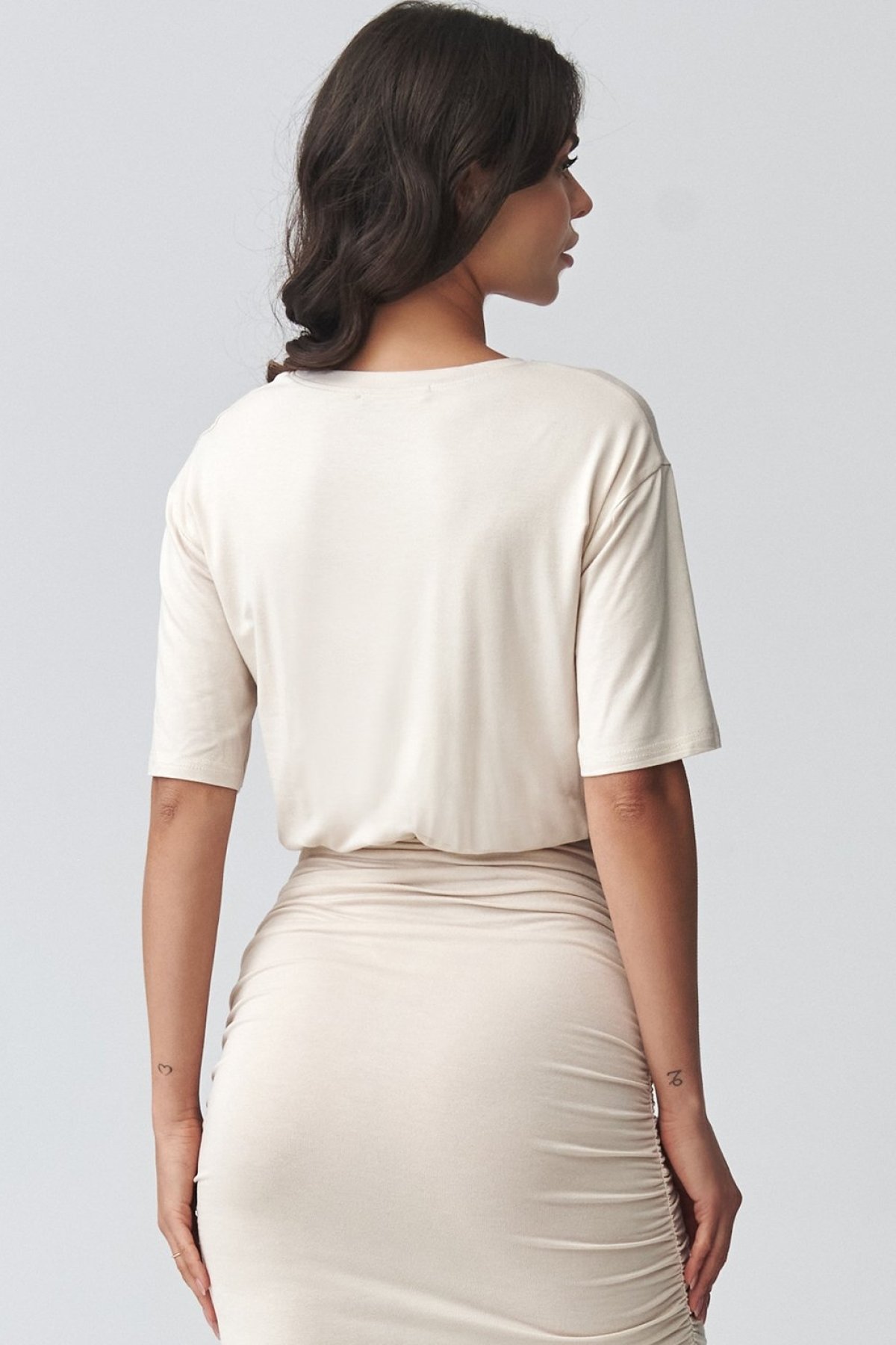 Přiléhavý střih obepne postavu, zatímco řasení v pase a na bocích pomáhá jemně modelovat proporce a dodat celku ženský výraz. Krátký rukáv a uzavřený výstřih drží model v čisté, univerzální linii, takže se hodí na den i na večer. Rozparek na noze přináší lehkost pohybu a dodává šatům výraznější charakter. Dlouhá délka působí elegantně, ale nepřehnaně formálně, takže šaty snadno sladíte s teniskami, sandály i podpatky.