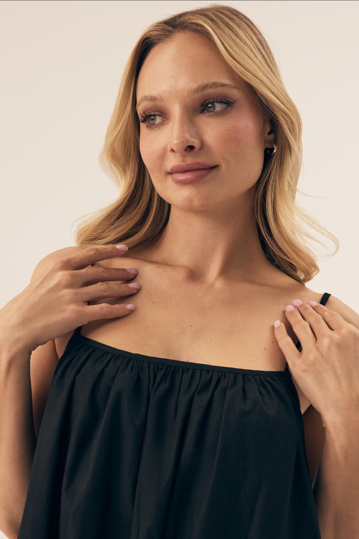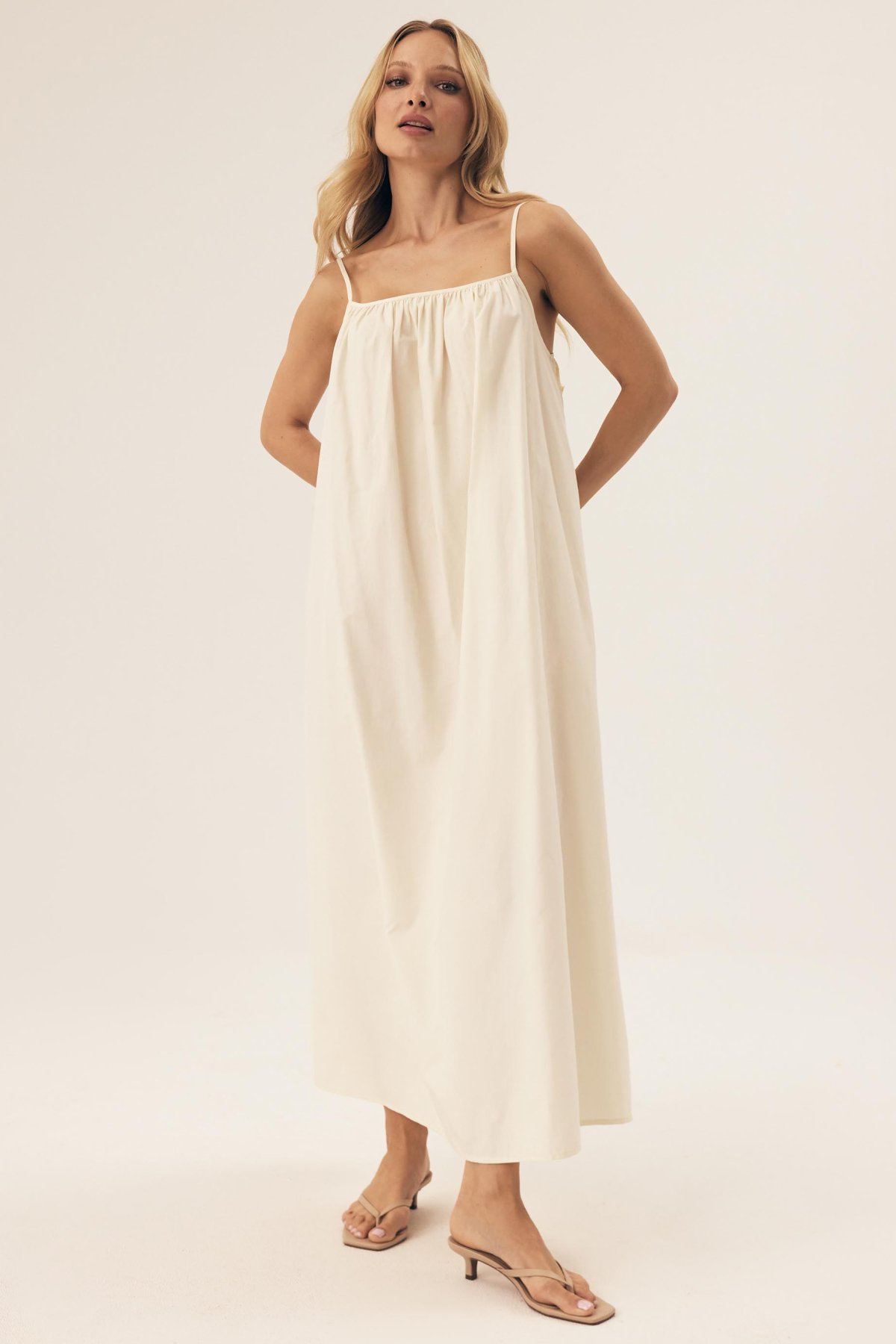 Šaty Verona jsou lehký a pohodlný model na letní dny. Volný střih zajišťuje příjemné nošení, zatímco tenká nastavitelná ramínka pomáhají lépe přizpůsobit usazení v oblasti dekoltu. Zadní část zaujme hlubším výstřihem do tvaru V, který doplňuje ozdobný volán. Model se hodí jak na denní nošení, tak na večerní letní příležitosti.