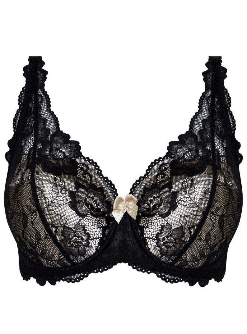 Podprsenka Alex Full-Cup spojuje elegantní vzhled s maximálním komfortem. Díky propracovanému střihu se svislými výztuhami a kosticemi poskytuje perfektní oporu i plnějšímu poprsí. Košíčky typu full-cup zajistí přirozený tvar. Jemná květinová krajka, která přechází až do ramínek, dodává podprsence ženský a romantický vzhled. Mezi košíčky ji doplňuje malá mašlička, která podtrhuje její decentní styl. Ramínka jsou nastavitelná a zapínání je na háčky v zadní části. Díky měkkému, kvalitnímu materiálu je tato podprsenka ideální pro každodenní nošení i speciální příležitosti.