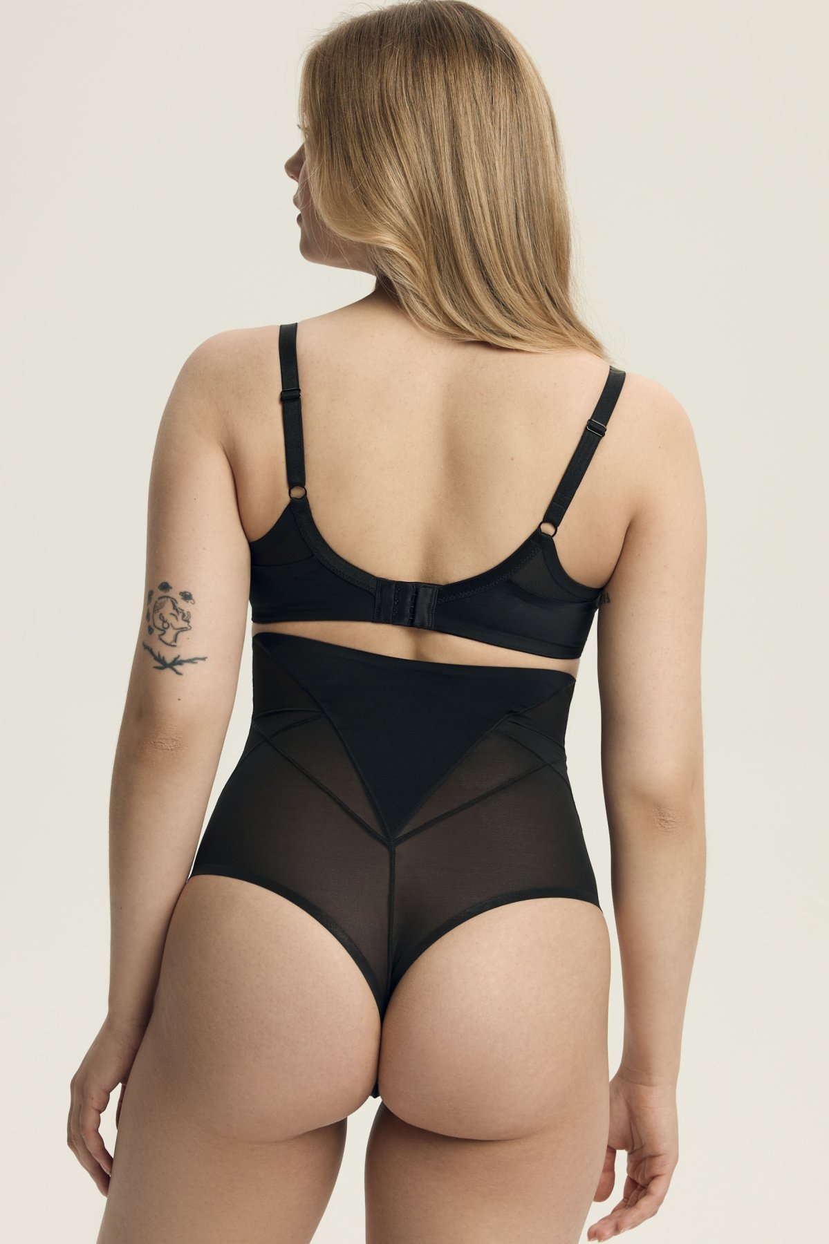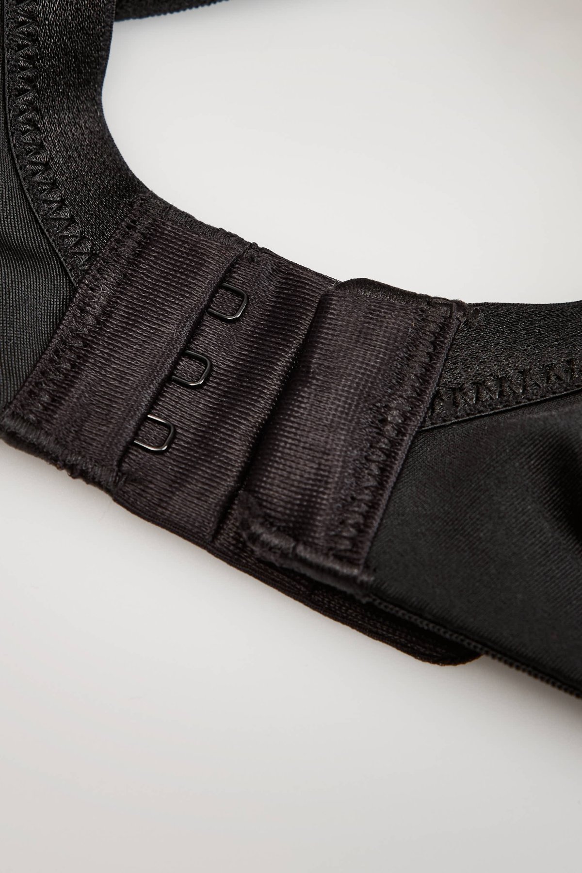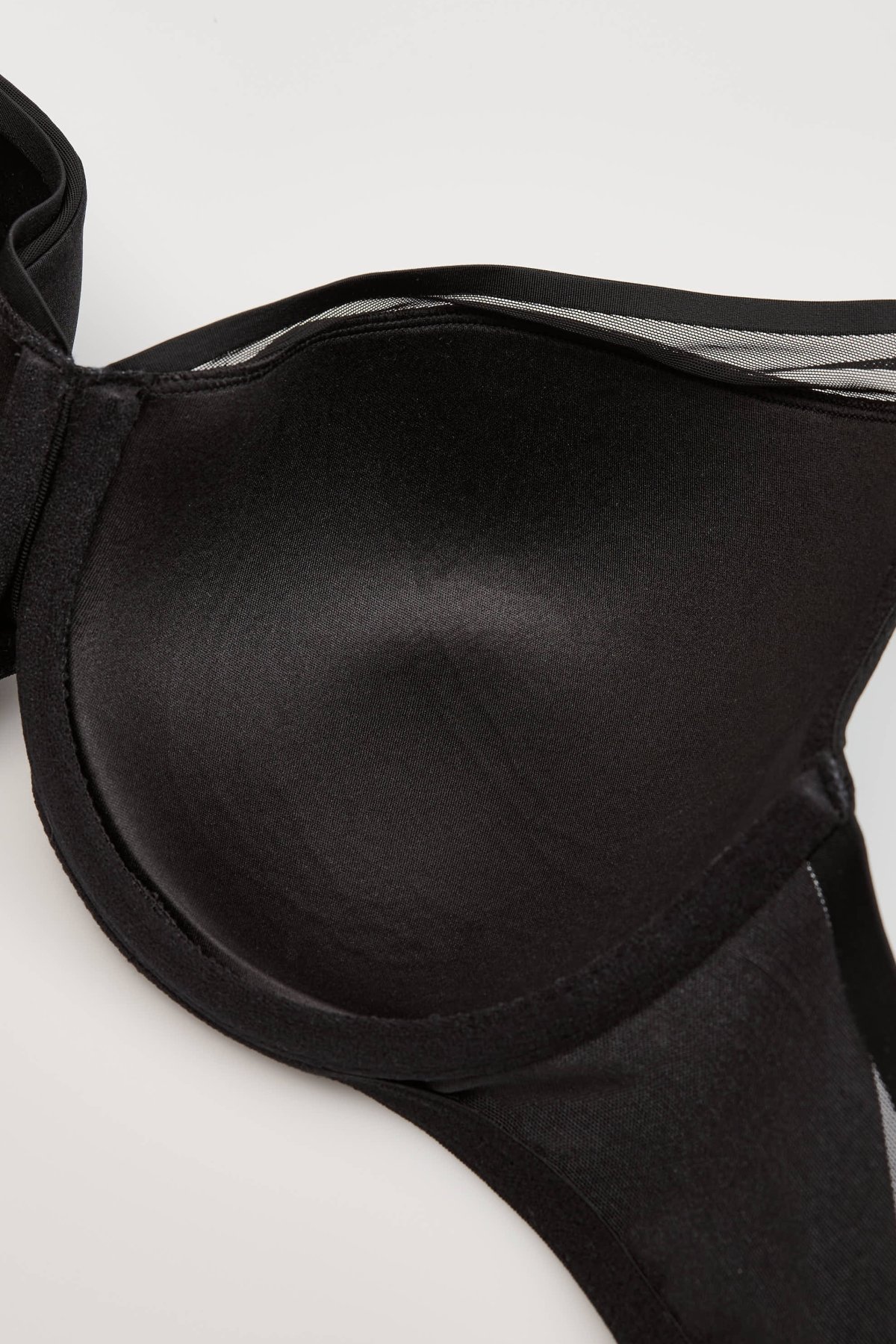 Hladké, modulovaně tvarované košíčky prsa jemně rozprostřou a zajistí přirozený efekt bez zploštění. Vyšší střed mezi košíčky pomáhá stabilitě a dodává pocit jistoty při nošení. Horní část košíčků je zakončená pružnou síťovinou, která se přizpůsobí tvaru prsou a působí lehce na pohled. Nastavitelná ramínka umožňují individuální nastavení délky, klasické zapínání na háčky na zadní straně dovoluje upravit obvod podle potřeby. Širší boční a zadní díly přispívají k hladké linii zad pod oblečením.