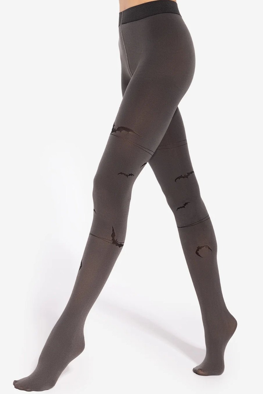 Dámské silonky Crazy Trick s motivem netopýrů jsou skvělým doplňkem halloweenského outfitu. Šedý odstín s matným povrchem a plné krytí vytvářejí výrazný, ale stylový efekt, který se hodí k šatům i kabátu. Díky technologii 3D se punčochy dokonale přizpůsobí nohám, jsou příjemné na dotek a odolné proti zatržení. Perfektní volba pro chladnější večery i tematické podzimní akce.