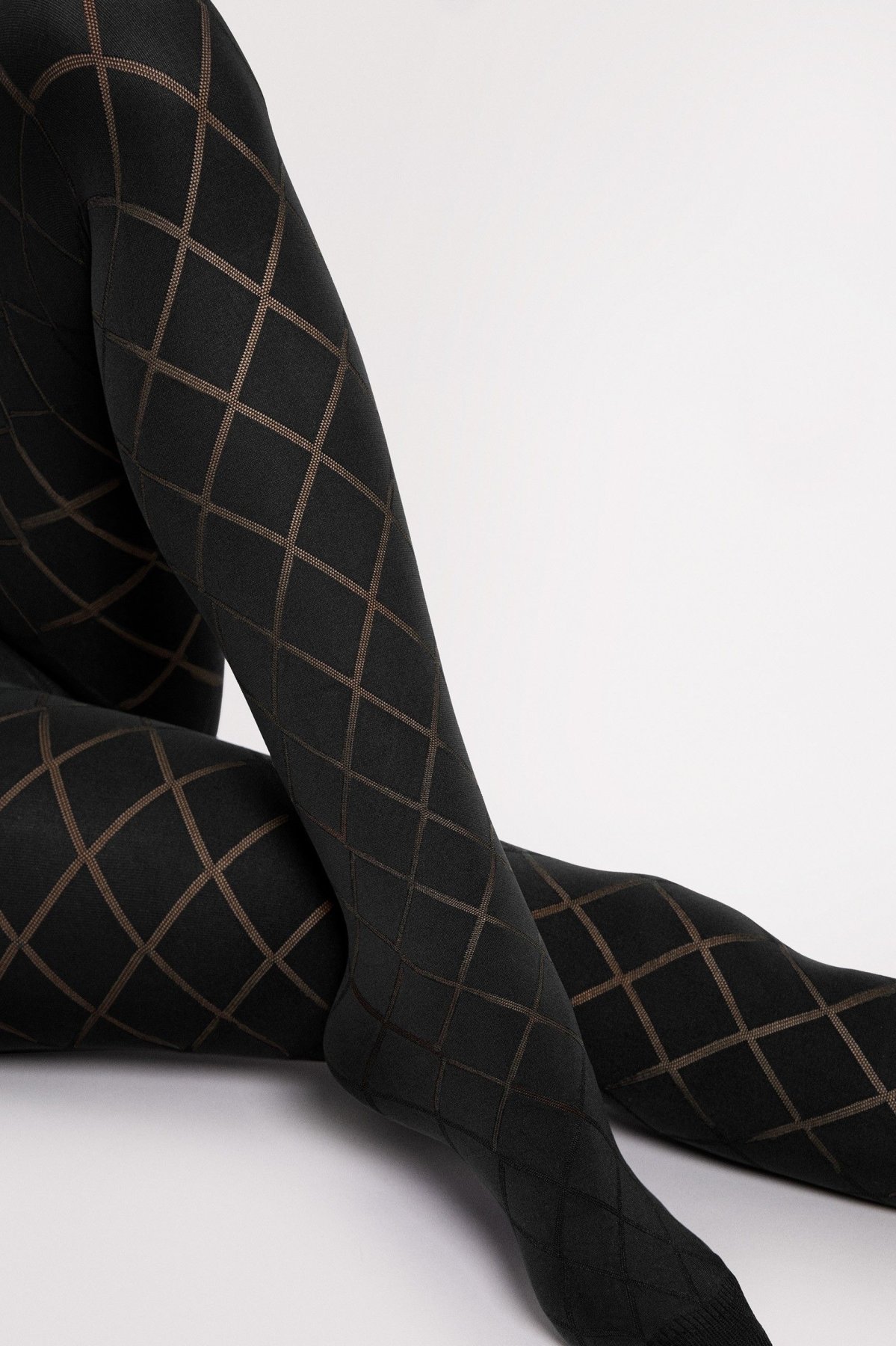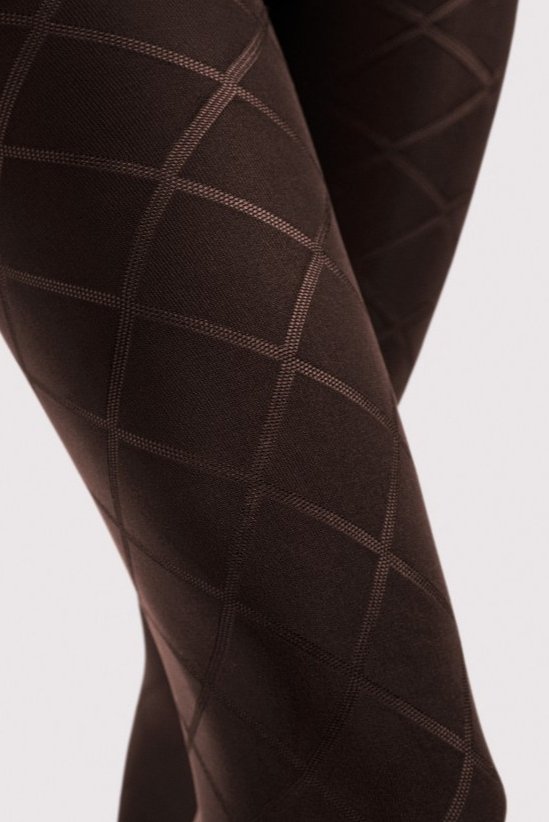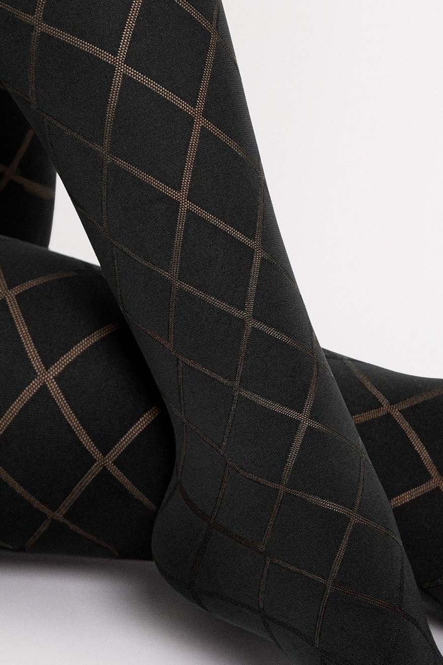 Stylové a hřejivé silonky, které si vás získají svým vzhledem i pohodlím. Model je vyroben z kvalitního mikrovlákna s matným povrchem, který působí elegantně a příjemně na dotek. Decentní kosočtvercový vzor opticky zeštíhluje nohy a dodává jim ladnou linii. Silonky mají optimální krytí, dokonale přiléhají k tělu a díky plochým švům zůstávají neviditelné i pod přiléhavým oblečením. Zesílená špička prodlužuje jejich životnost, takže se stanou vaším oblíbeným doplňkem nejen do práce, ale i pro večerní nebo každodenní nošení.