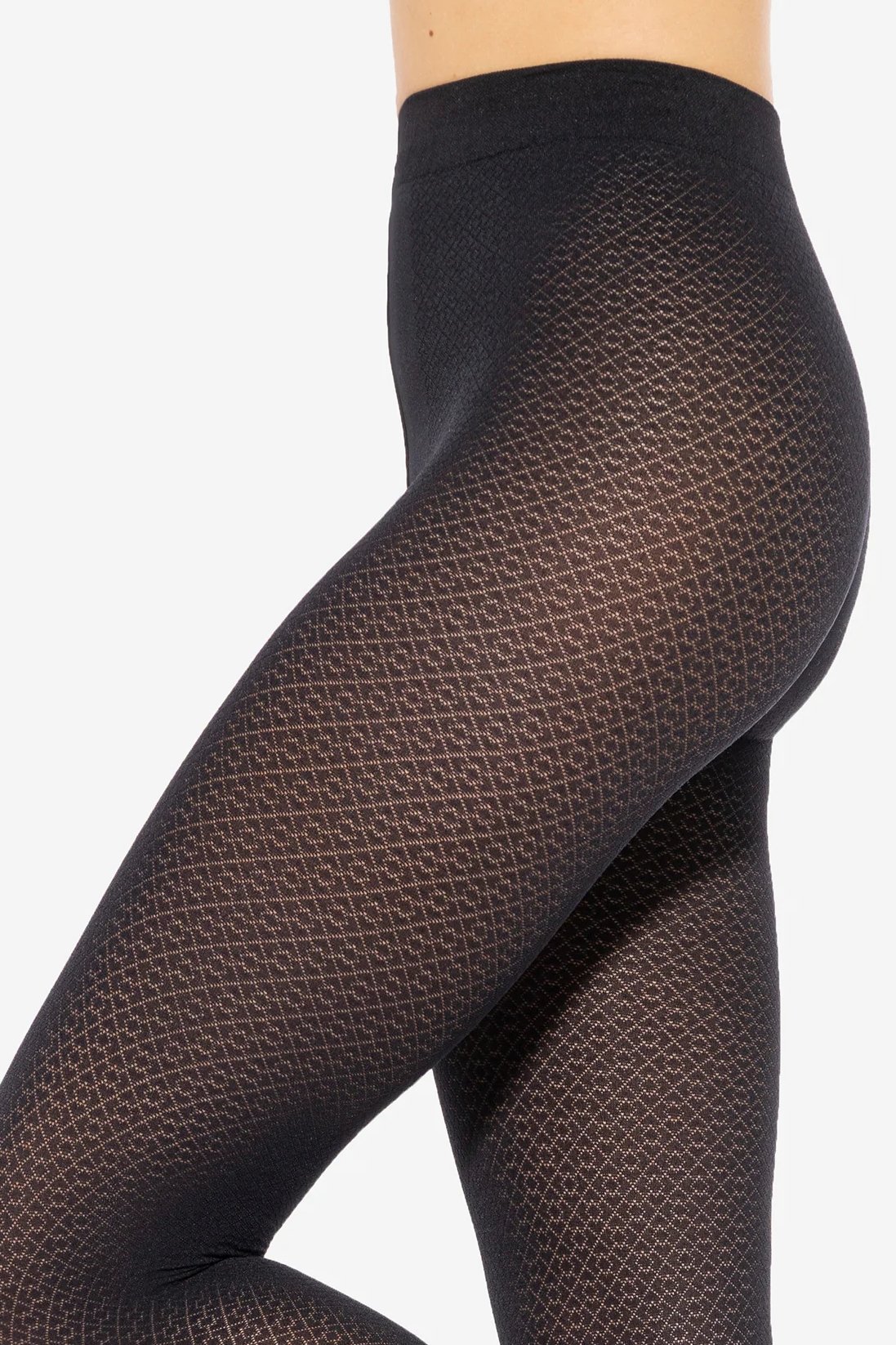 černé silonky s výraznějším geometricko-ornamentálním vzorem