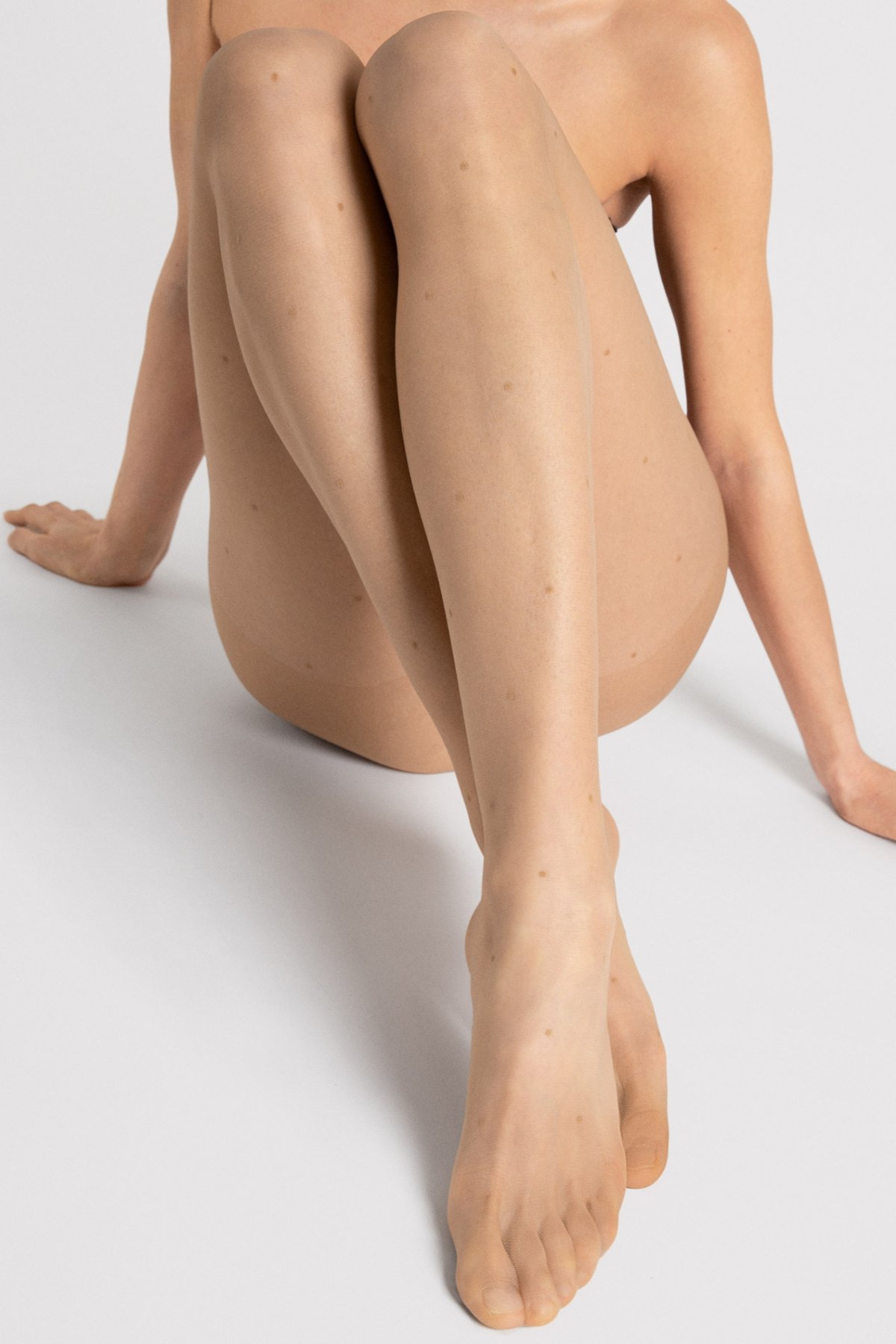 Silonky Pia 10 DEN jsou lehké a jemné punčocháče zdobené drobnými puntíky. Subtilní vzor dodává klasickým outfitům hravost, ženskost a elegantní lehkost. Díky tenkému provedení se hodí hlavně na jaro a teplejší dny, kdy krásně doplní šaty, sukně i slavnostnější styling. Pružný materiál se dobře přizpůsobí postavě a zajišťuje pohodlné nošení.