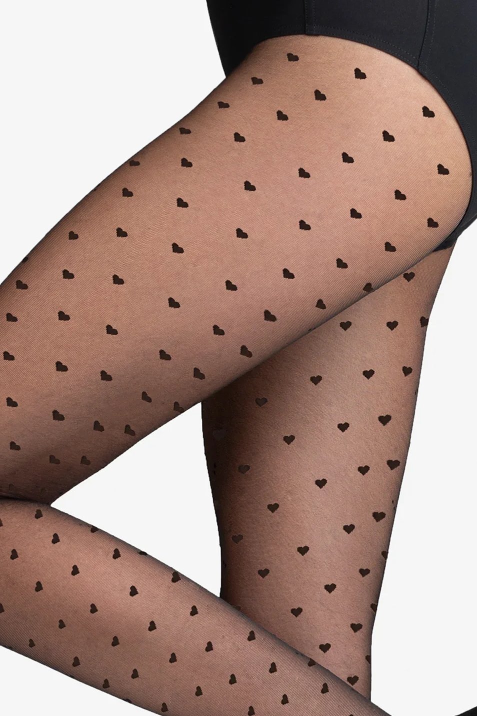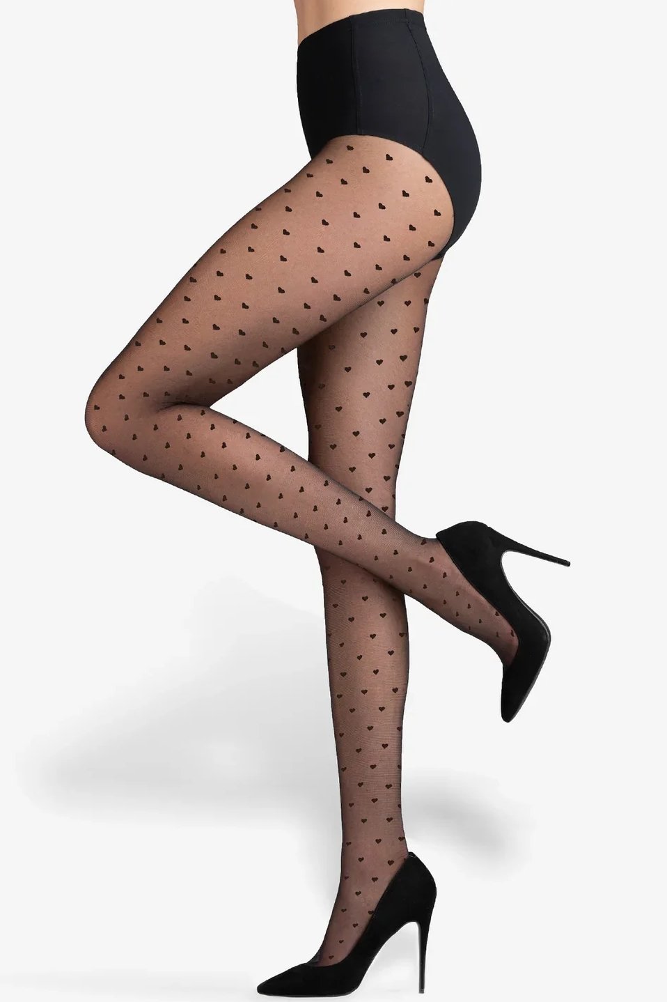 Dámské silonky Tiffy okouzlují jemným vzorem drobných srdíček, který dodá každému outfitu romantický nádech. Díky tenkému materiálu s hustotou 20 DEN působí lehce a žensky, přičemž si zachovávají pružnost a pohodlí při nošení. Skvěle se hodí k černým šatům na večer. Ideální doplněk pro ženy, které rády podtrhují svůj styl decentními, ale výraznými detaily.
